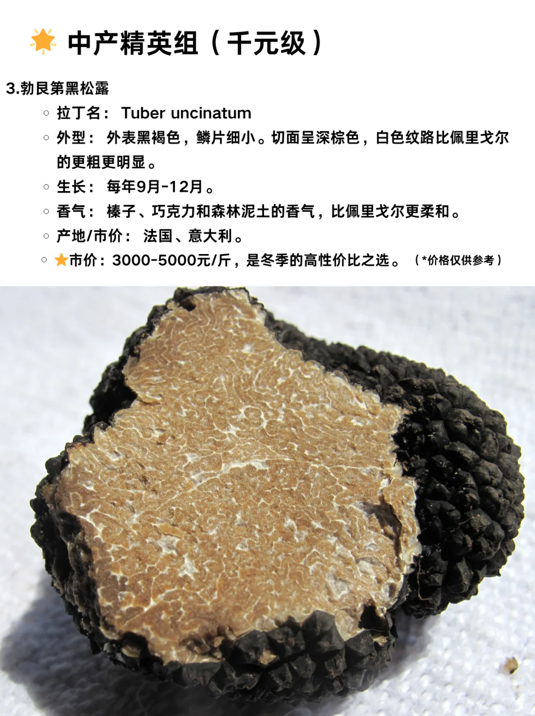 产地/市价: 法国、意大利。⭐市价:3000-5000元/斤,是冬季的高性价比之选。