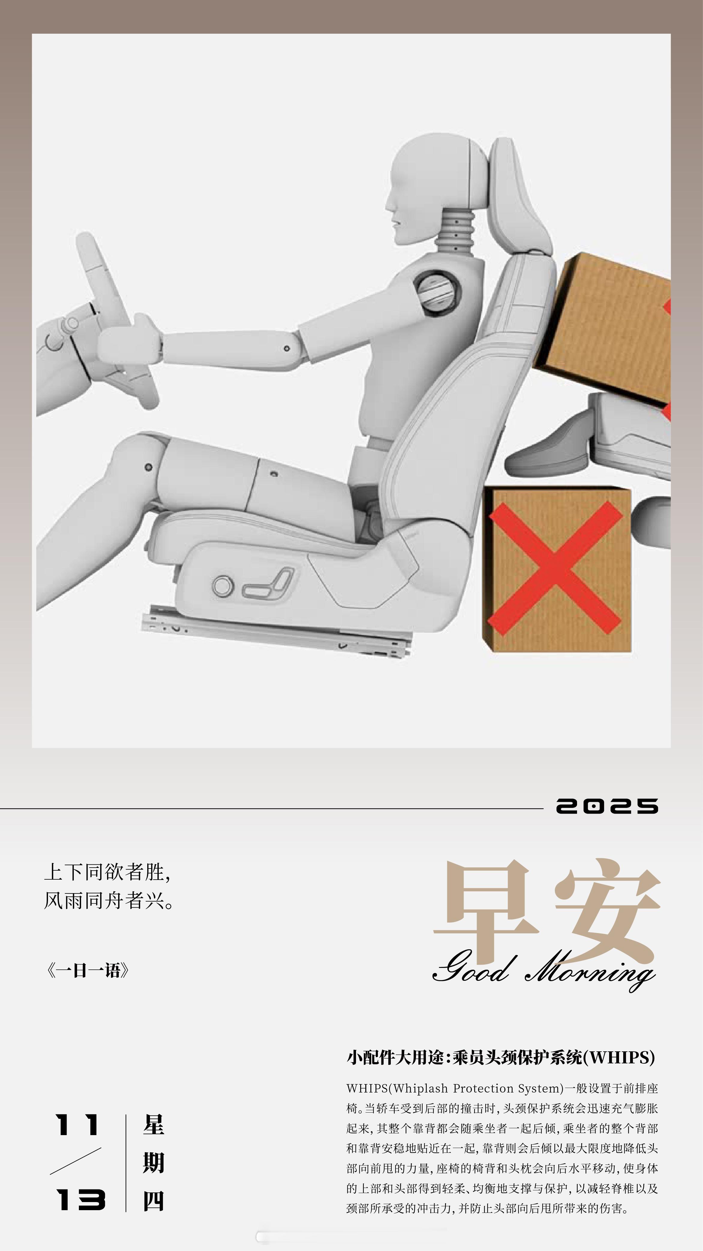 WHIPS(Whiplash Protection System)一般设置于前排座椅。当轿车受到后部的撞击时,头颈保护系统会迅速充气膨胀起来,其整个靠背都会随乘坐者一起后倾,乘坐者的整个背部和靠背安稳地贴近在一起,靠背则会后倾以最大限度地降低头部向前甩的力量,座椅的椅背和头枕会向后水平移动,使身体的上部和头部得到轻柔、均衡地支撑与保护,以减轻脊椎以及颈部所承受的冲击力,并防止头部向后甩所带来的伤害。