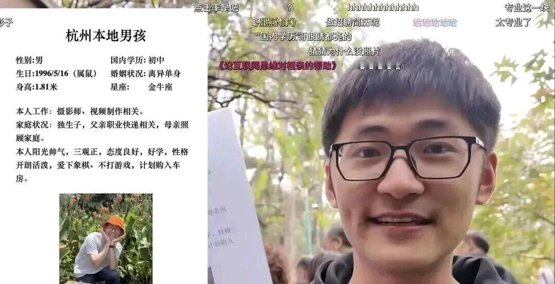 29岁的营收过亿公司的CEO,妥妥的黄金单身汉,被“相亲角”大妈们吐槽“学历太低”“这么年轻就离婚了”,哈哈,你敢信? 这个人就是影视飓风的CEO Tim,他随机抽中了一条“去相亲”的评论,之后现身杭州相亲角。Tim 把自己塑造成杭州本地29岁离异的人谈,“国内初中学历”,父亲职业与快递相关,母亲照顾家庭, 并称自己“计划购入车房”。不意外,遭遇了“滑铁卢”,引来阿姨直言:“学历太低了”。 不熟悉的人可能不知道,Tim身上有很多标答:千万粉丝自媒体的老板,海归硕士,老爸是圆通快递 总裁。 Tim好举让很多人破防,批评他故意炒作,“装穷 测试人性” “加深性别对立”...你怎么看?