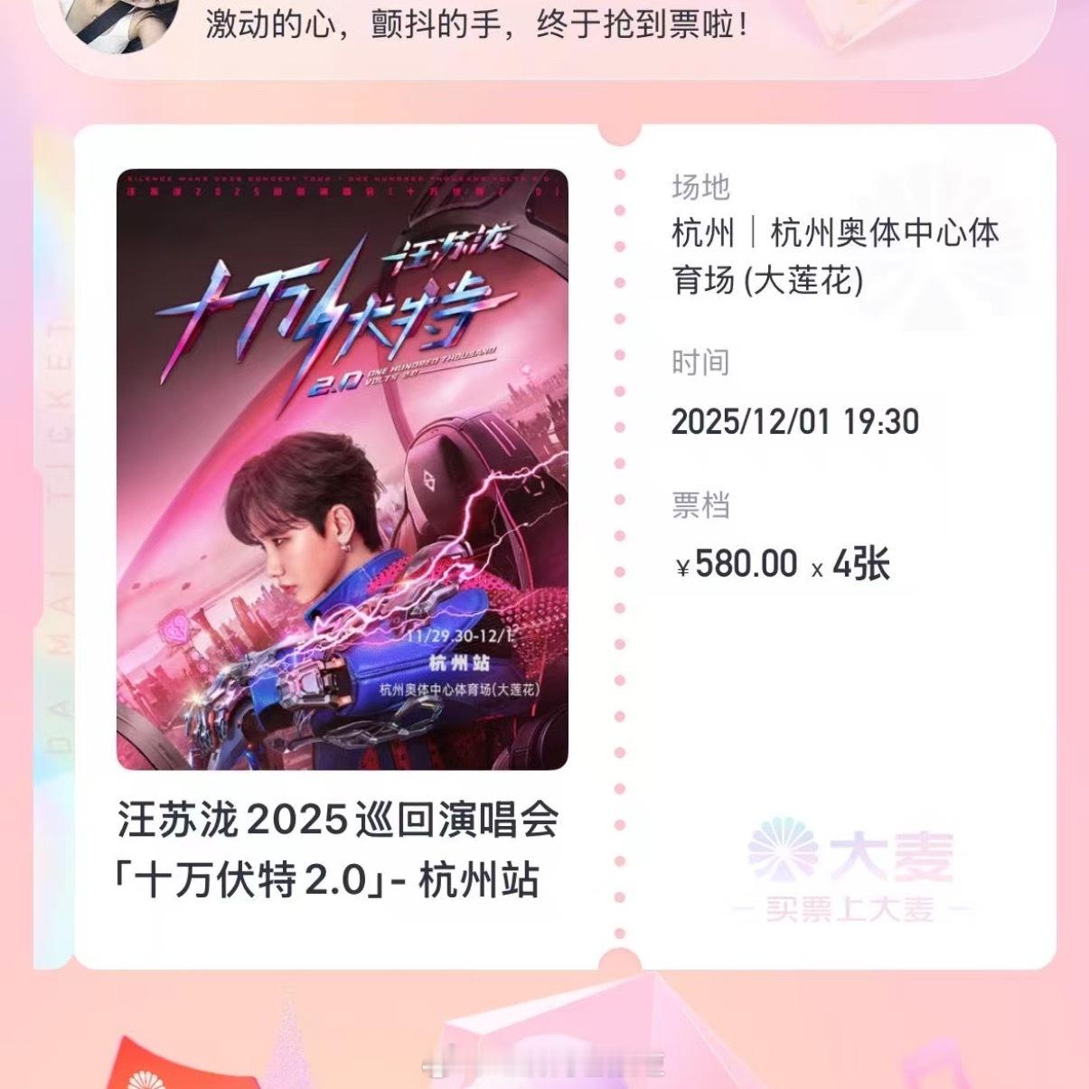 是谁有这么好的朋友 突然就给我抢到汪苏泷演唱会门票了 直接转钱 这就是默契