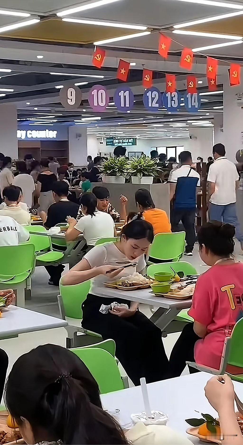 越南中资工厂饭堂到处都是年轻人, 在这里上班工资还不错, 国内工厂一到国外, 管理也人性化了, 主管不骂人了, 厂牌不丢在地上了, 就连中午也有午休时间了, 饭菜也丰富可口了, 也不会逼迫工人免费加班了, 好像一切都一以人为本了, 是什么原因让他们如此收敛, 是他们发善心吗? 当然不是这一切都是人家争取来的, 反倒是在国内把人当机器用, 关键还不保养, 所以说国内工厂国际化才是一条出路。 要不然不知道国外啥样, 大家觉得越南中资工厂餐厅饭菜怎么样? 中企越南 越南打工 越南中国公司 越南公司 越南车间 越南工厂困局 越南外资公司
