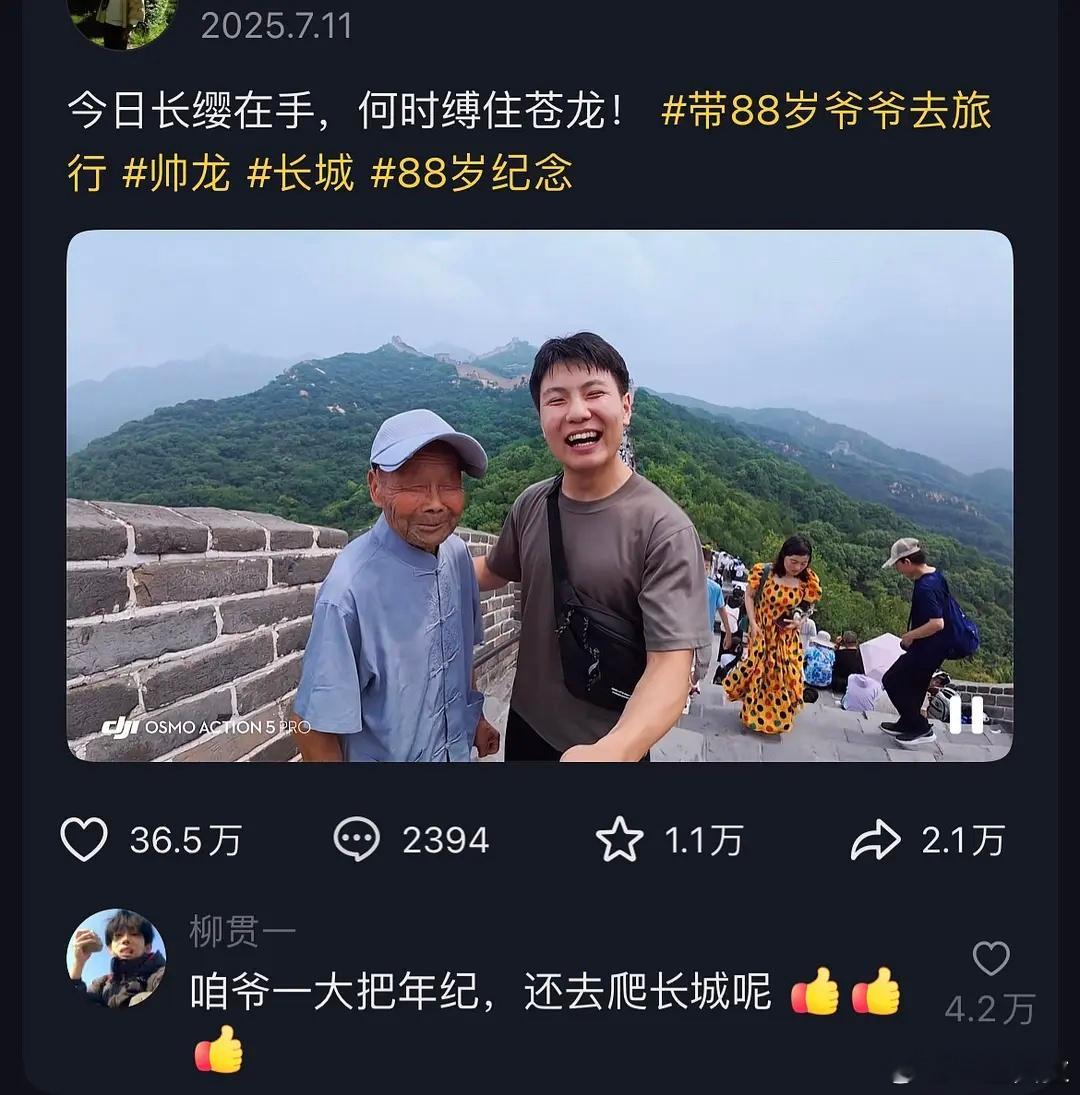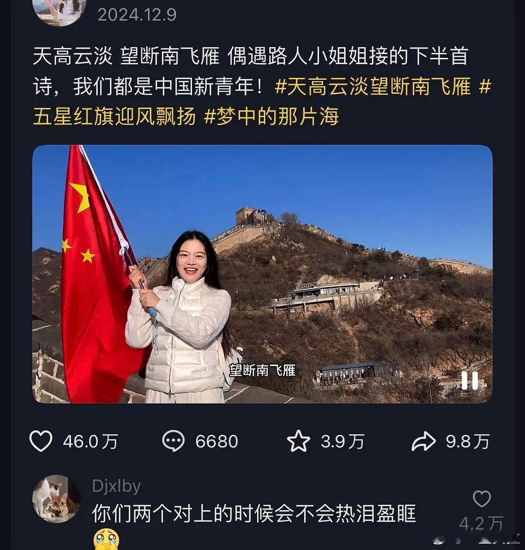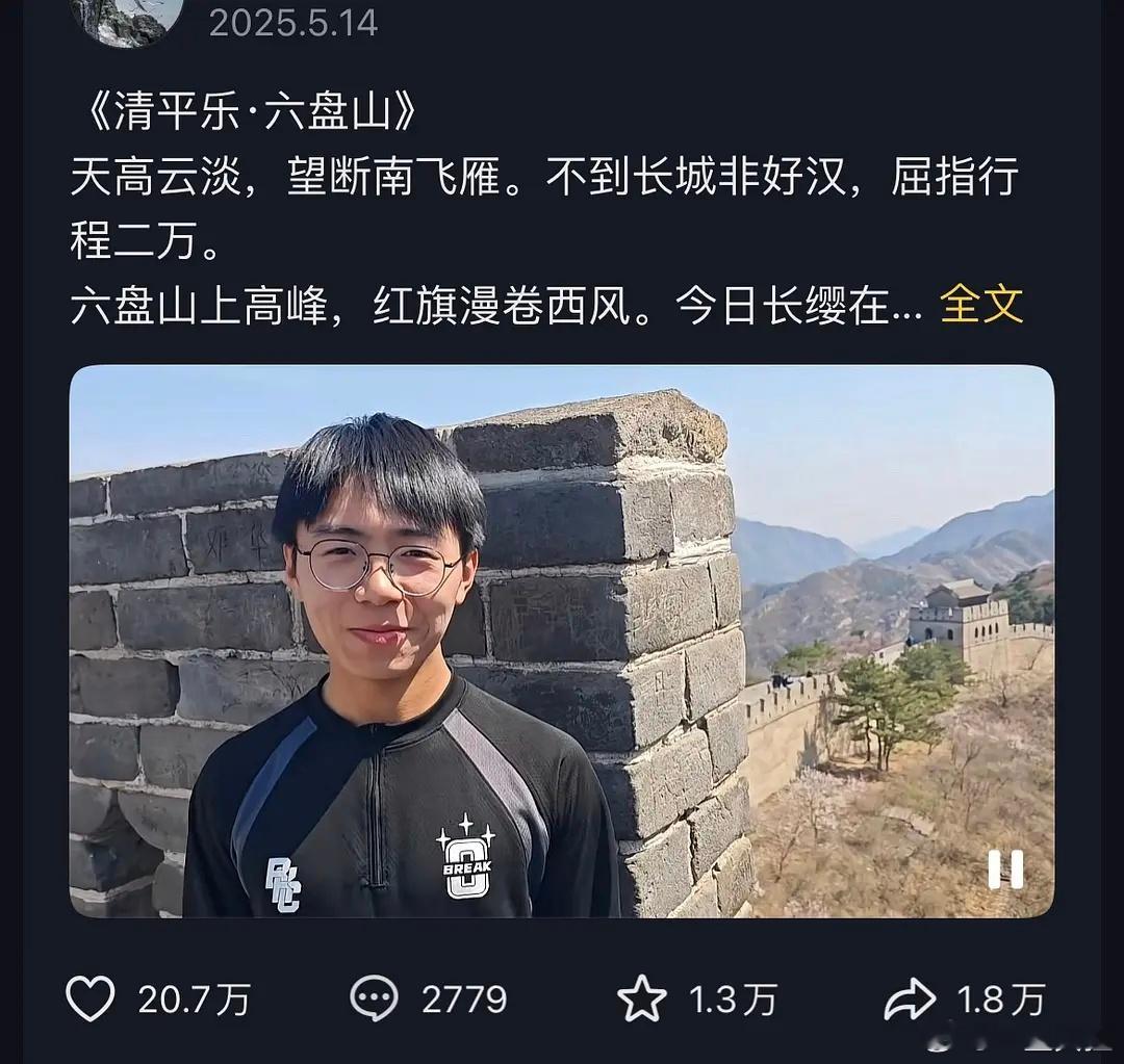 最近爬长城念诗又火起来了刷到一个最近的都200w点赞了