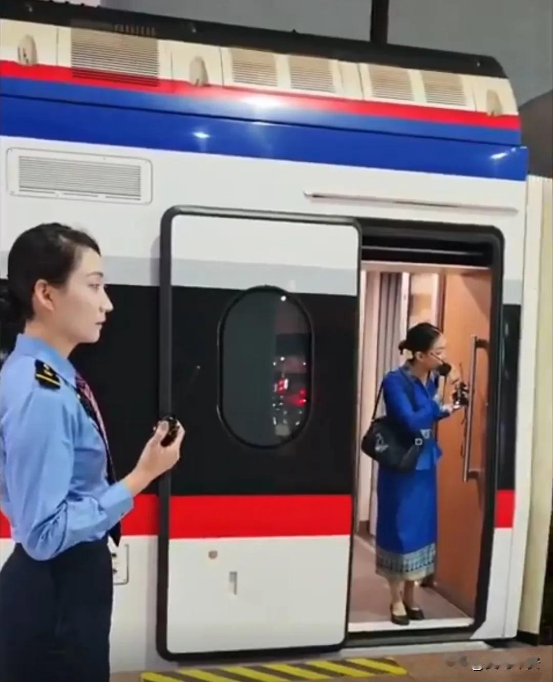 中国乘务员vs老挝乘务员 中老两国的国际跨境列车到站,两国的乘务员分别走下月台迎接旅客。穿制服的是中方乘务员,穿民族服的是老挝乘务员。个人认为不管是身高、气质还是专业度中方更胜一筹,老挝乘务员看上去像导游大妈。各位条友,你更喜欢哪一款?