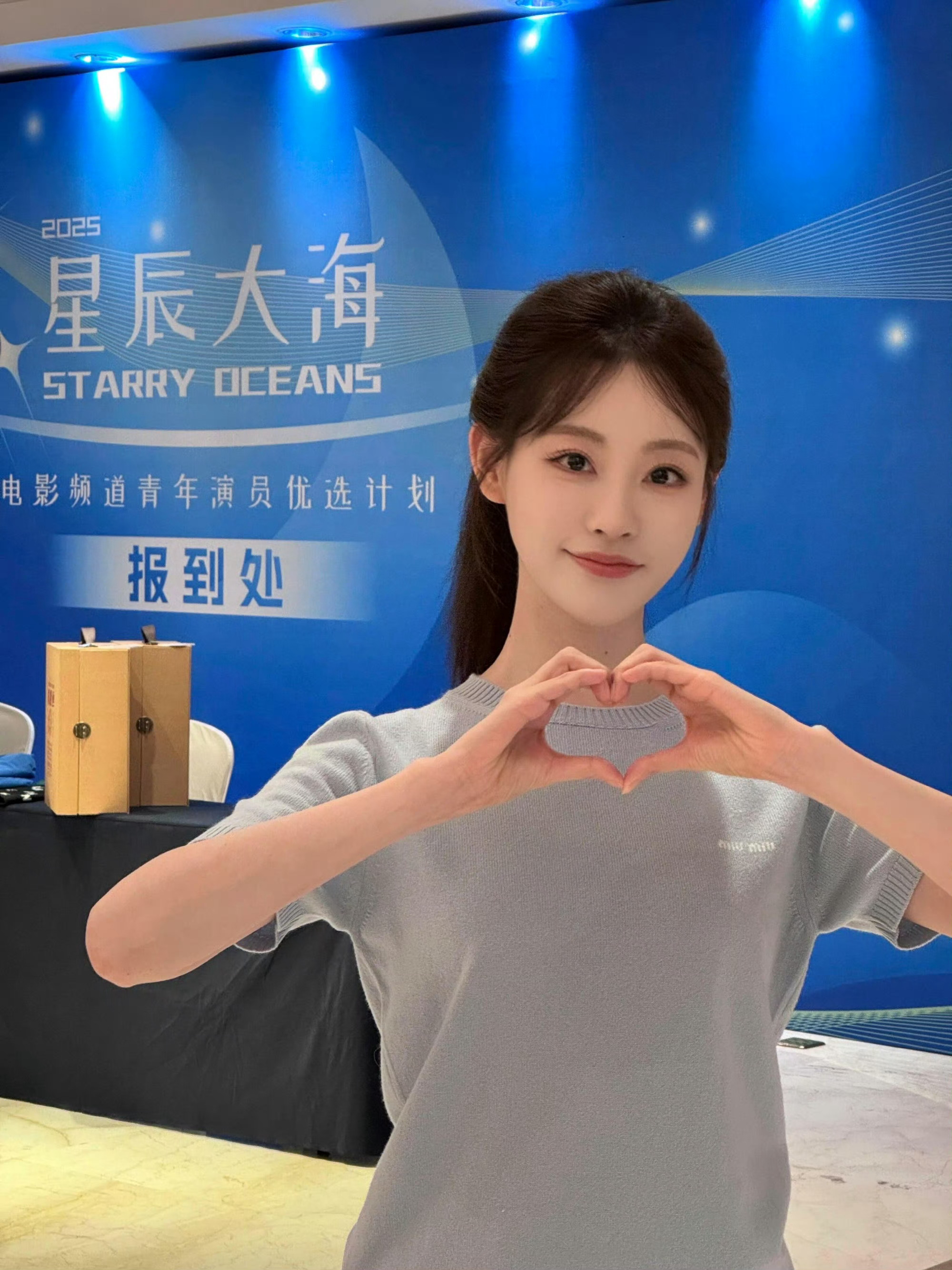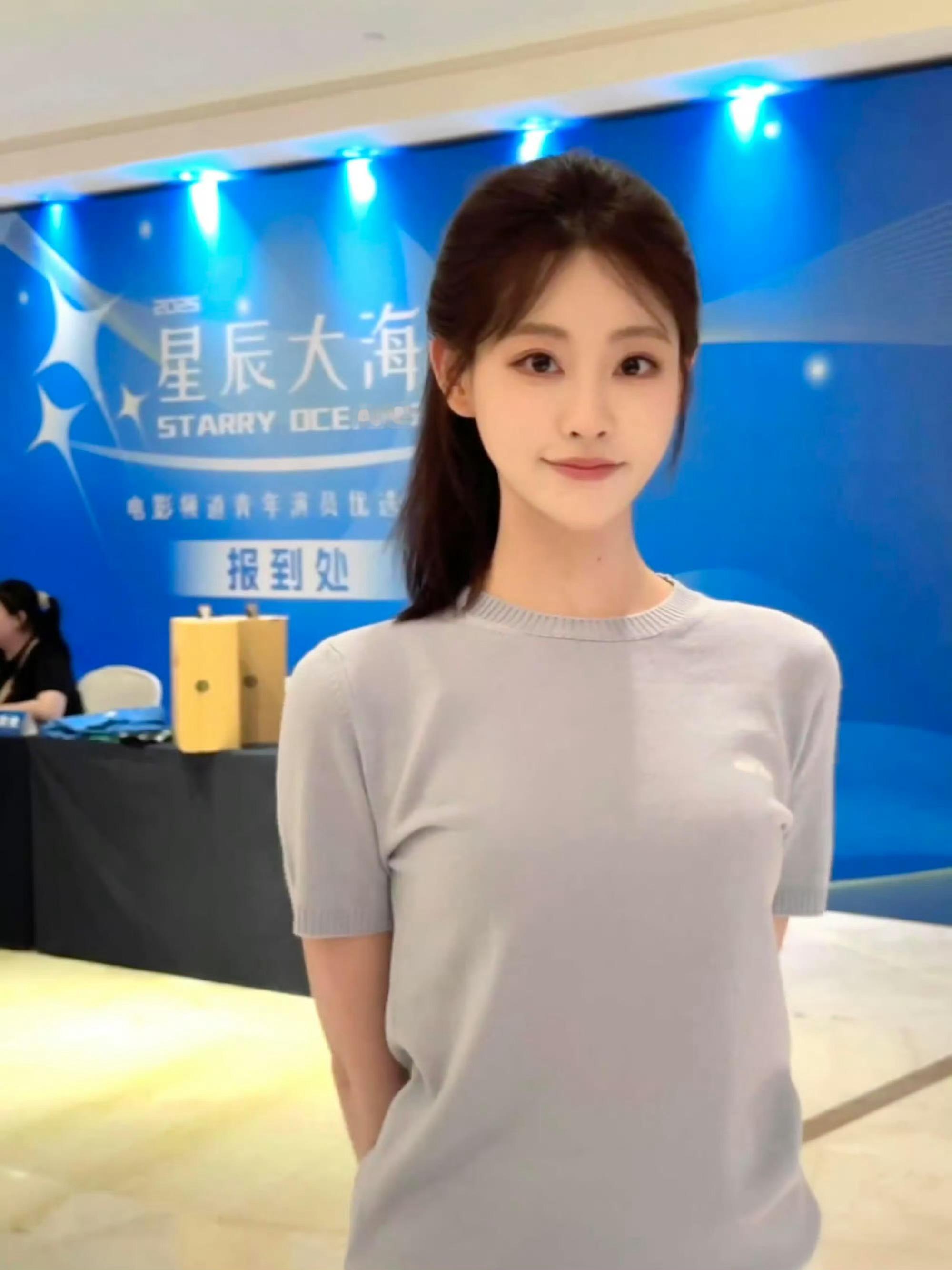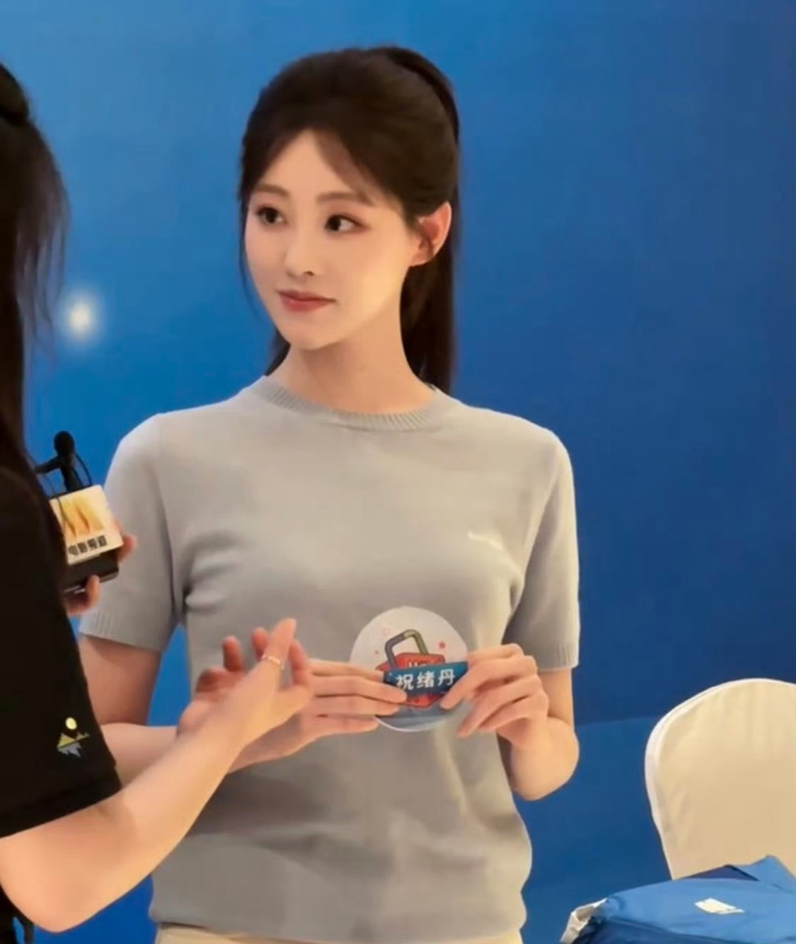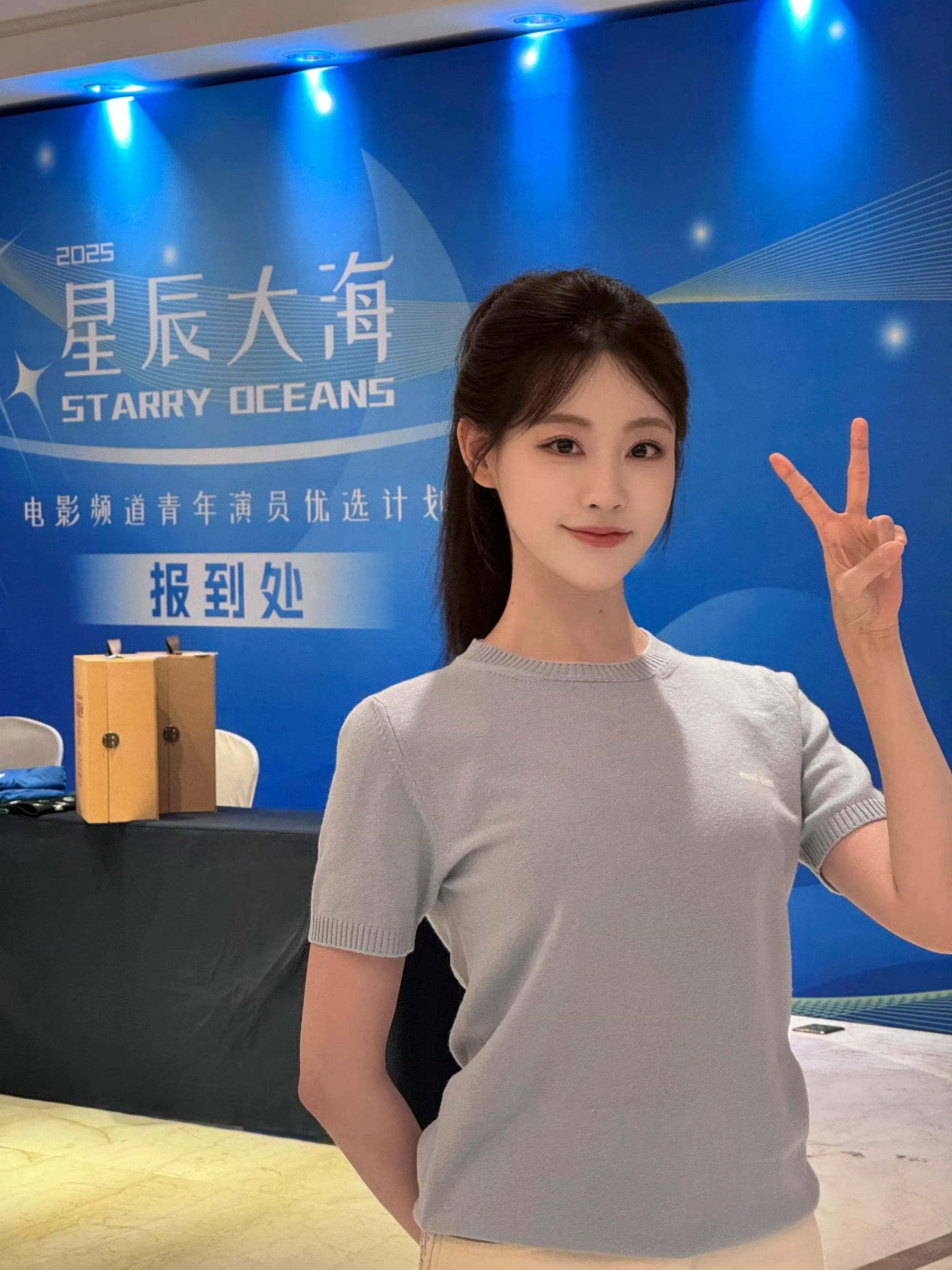 简简单单的高马尾+素色针织短袖既干净又清爽,完全白月光学姐