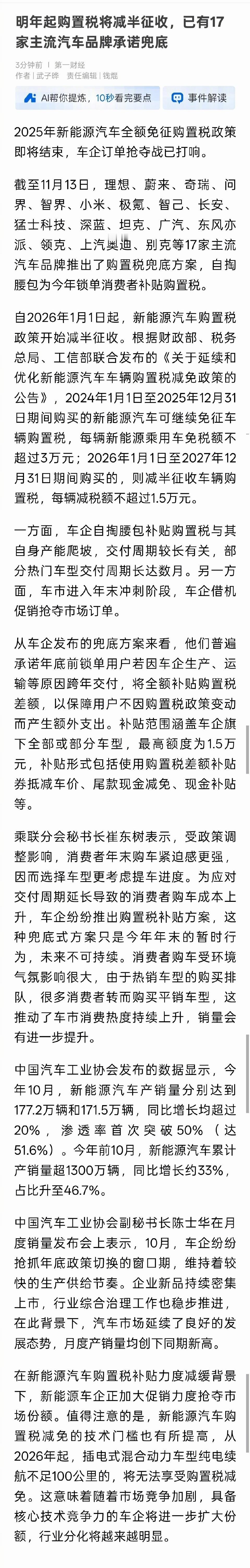 明年购置税征收50%,从2026年1月1日开始。很多车企已经为今年下定用户兜底了,有想法,并且看好车的,就赶紧下定吧。另外,注意你定的品牌会不会帮你兜底,能省多少算多少~