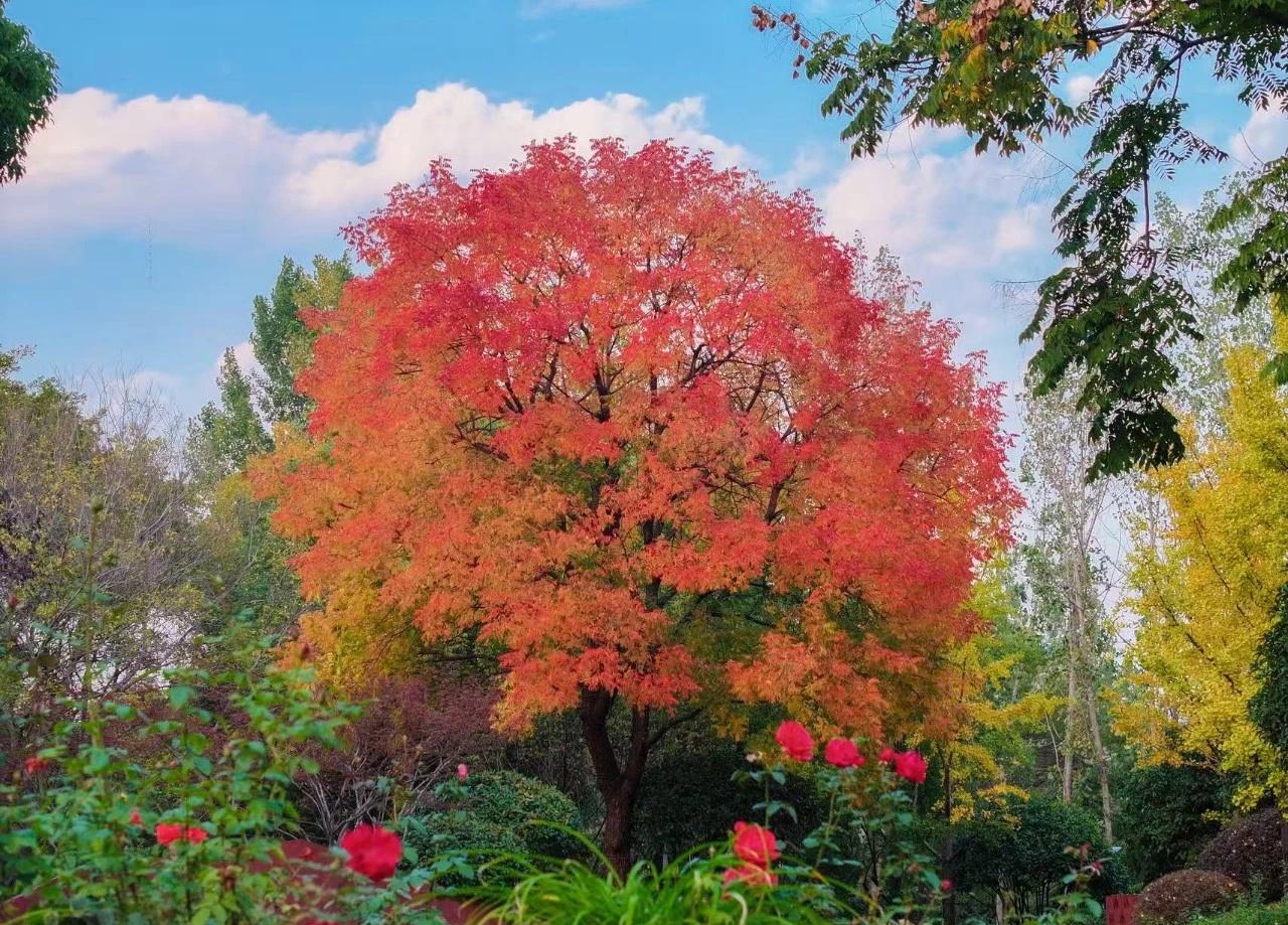 秋风执起调色盘,从金黄到火红渐次晕染,@武汉园博园景区 南通园的网红树-黄连木成熟啦!一抹深红的它在一众黄绿中傲立群木,天生的艺术气质,在天地间挥洒着独属于秋冬的浓烈宣言! 欢迎大家带上你的航拍器,来捕捉这株"秋日明星"的惊艳时刻。 地址:武汉园博园南通园(北门入园后往右走约100米)武汉公园的秋叶将进入最佳观赏期 @武汉城建集团 武汉·武汉园博园[超话]
