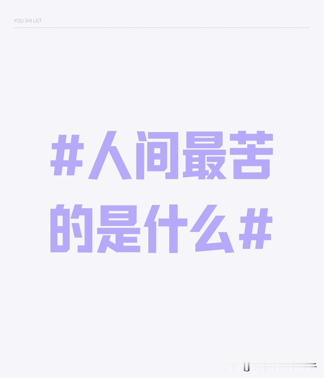 人间最苦的,真是五花八门。有人觉得是穷,有人觉得是累,但依我看,最苦的是“没办法”。 就像父母生病卧床,你在一旁干着急,使不上一点劲,只能眼睁睁看着他们受苦。还有拼尽全力生活,却总被现实狠狠打脸,努力好像都白费了。心里有一肚子话,想找人倾诉,却找不到懂自己的人,那股憋屈劲儿,比挨打还难受。 说到底,明知不可为还得硬着头皮上的无奈,放不下的牵挂,挣不脱的命运,才是人间最苦啊。