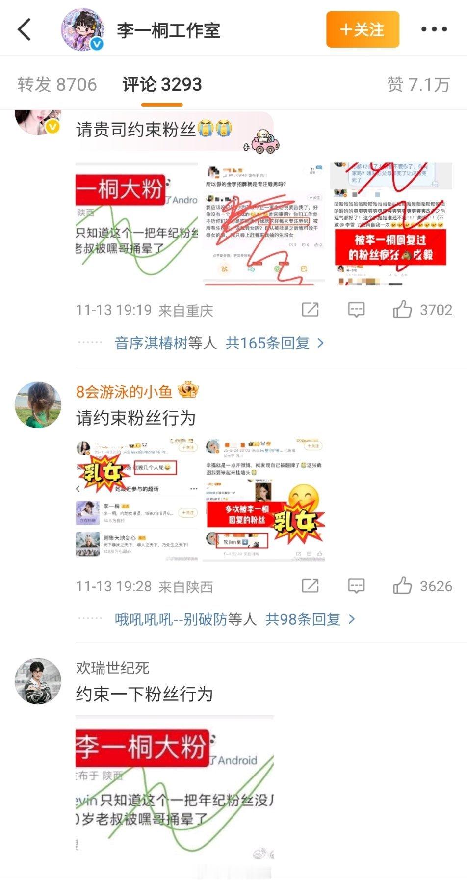 看评论区👇🏻 ie冲了李一桐工作室的维权博,原来是告的cy粉丝吗?是懂恶人先告状倒打一耙的。人合理维权,给他成毅家急那样呢~那么着急对号入座