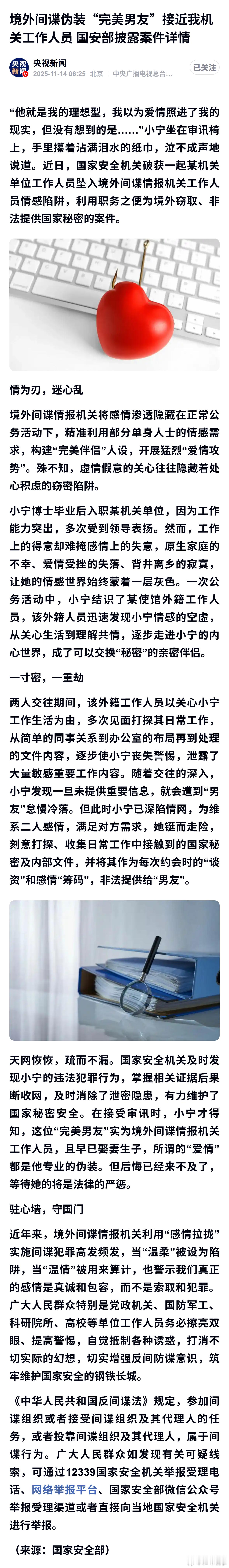 境外间谍伪装“完美男友”接近我机关工作人员 国安部披露案件详情