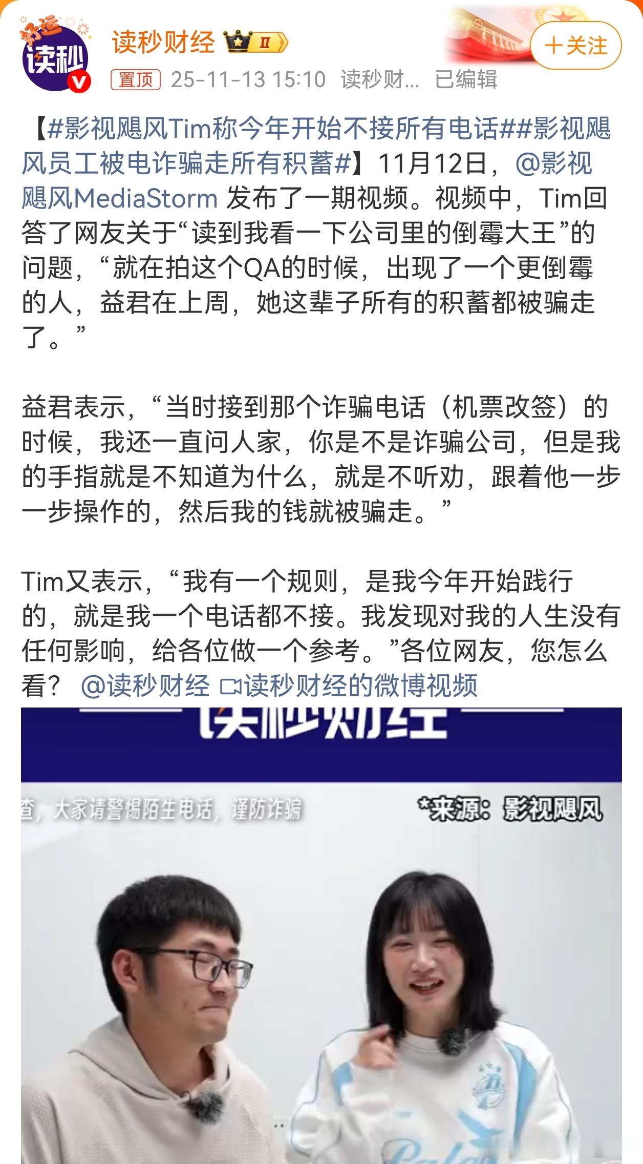 防止诈骗,Tim一个电话都不接。感觉有些极端。