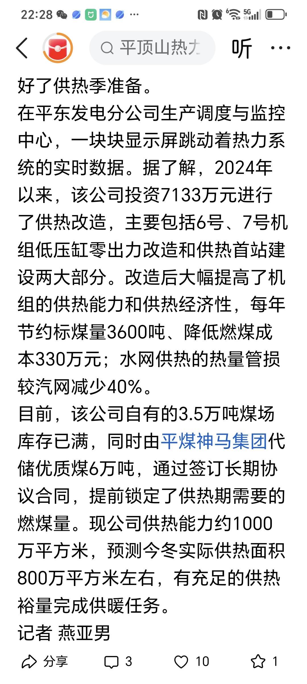 今年的供暖季,应该不会再有暖气不热的现象出现了吧! 昨天平顶山微报看到记者发的一条消息,大意是平东发电分公司已经为今年的供暖做好了充足的准备,供暖设备整装待发,将会在今年的供暖季,为16.28万户家庭,送去融融的暖意。文中还特别提到,该公司的供热能力约为1000万平方米,而今冬实际供热面积约为800万平方米,有着充足的供热余量,也就是说不会出现“小马拉大车”的现象。若真的是这样,那么今冬由平东发电分公司提供暖气的用户,可真就是享福了。 平东发电分公司已将供需双方的数据公布出来了,而在媒体上并没有看到平顶山市热力公司的相关报道,平顶山市热力公司的供热能力,能否满足用户的需求呢,是否也像平东发电分公司那样供热能力绰绰有余,使用平顶山市热力公司供暖的用户,也能过上一个暖融融的取暖季呢? 平顶山市热力公司能将公司的供热能力和用户实际需要的数据公布一下吗?