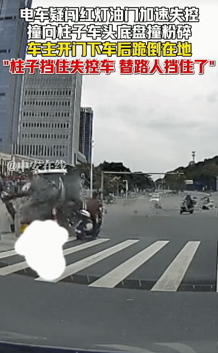 “与死神擦肩而过!”广东一辆电车疑似失控,加速通过红灯。结果撞到柱子上,底