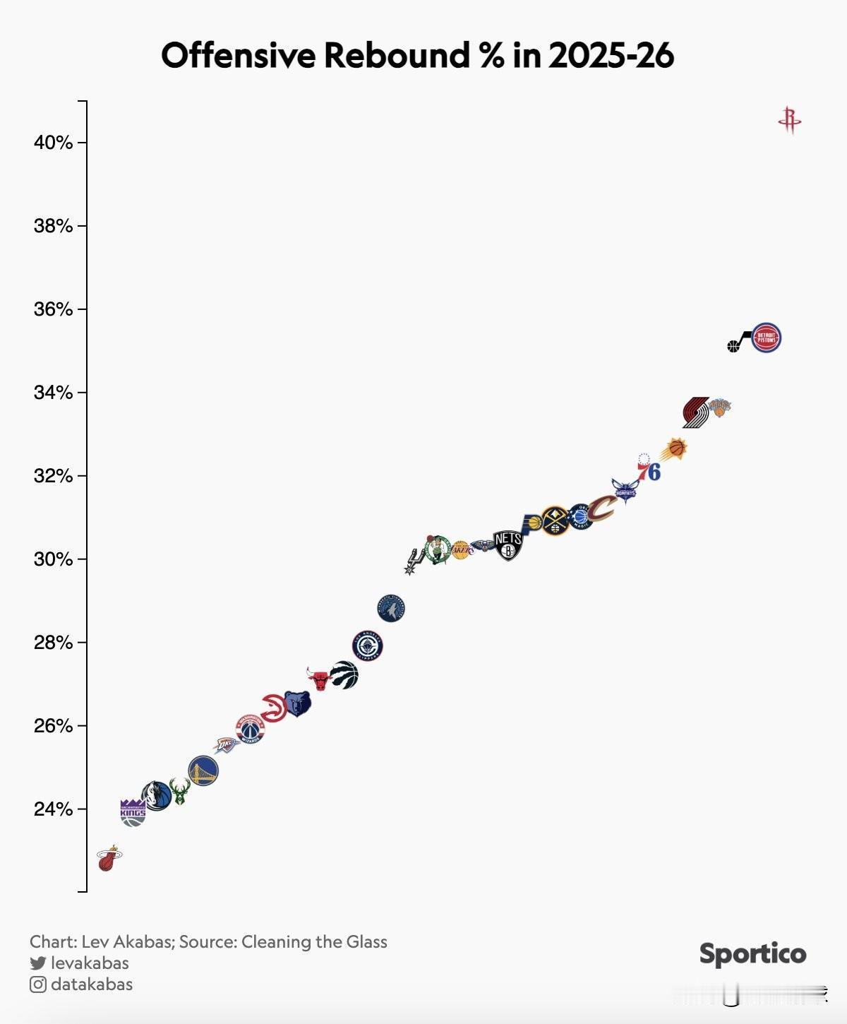 火箭队抢篮板的能力简直令人难以置信,是联盟30支球队里面独一档的存在! 从统计图