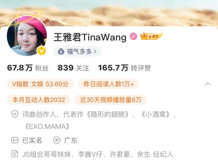 【投稿】音乐创作人王雅君关注朱志鑫了,是不是朱志鑫要出新歌了。