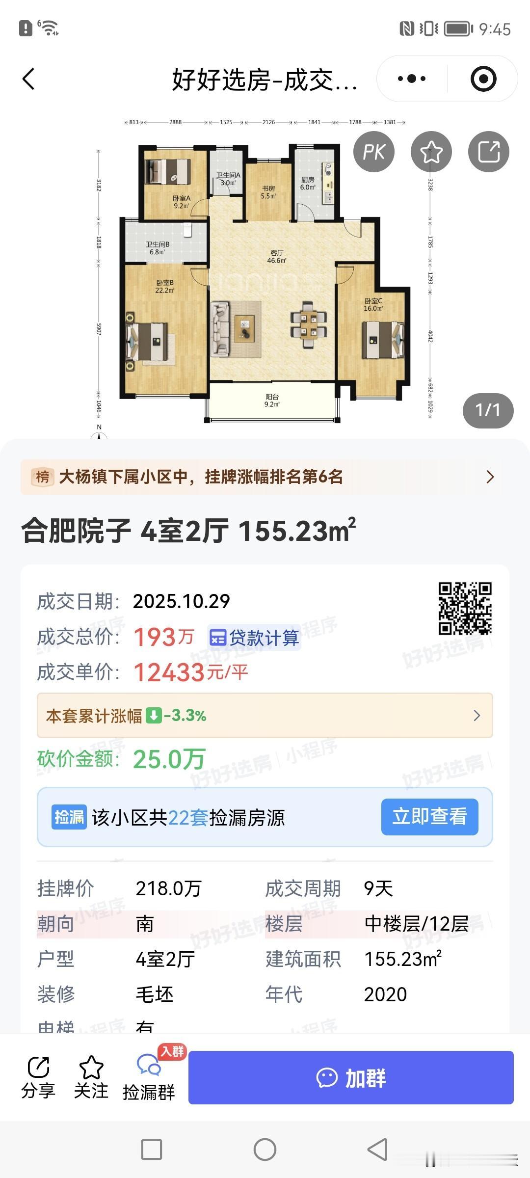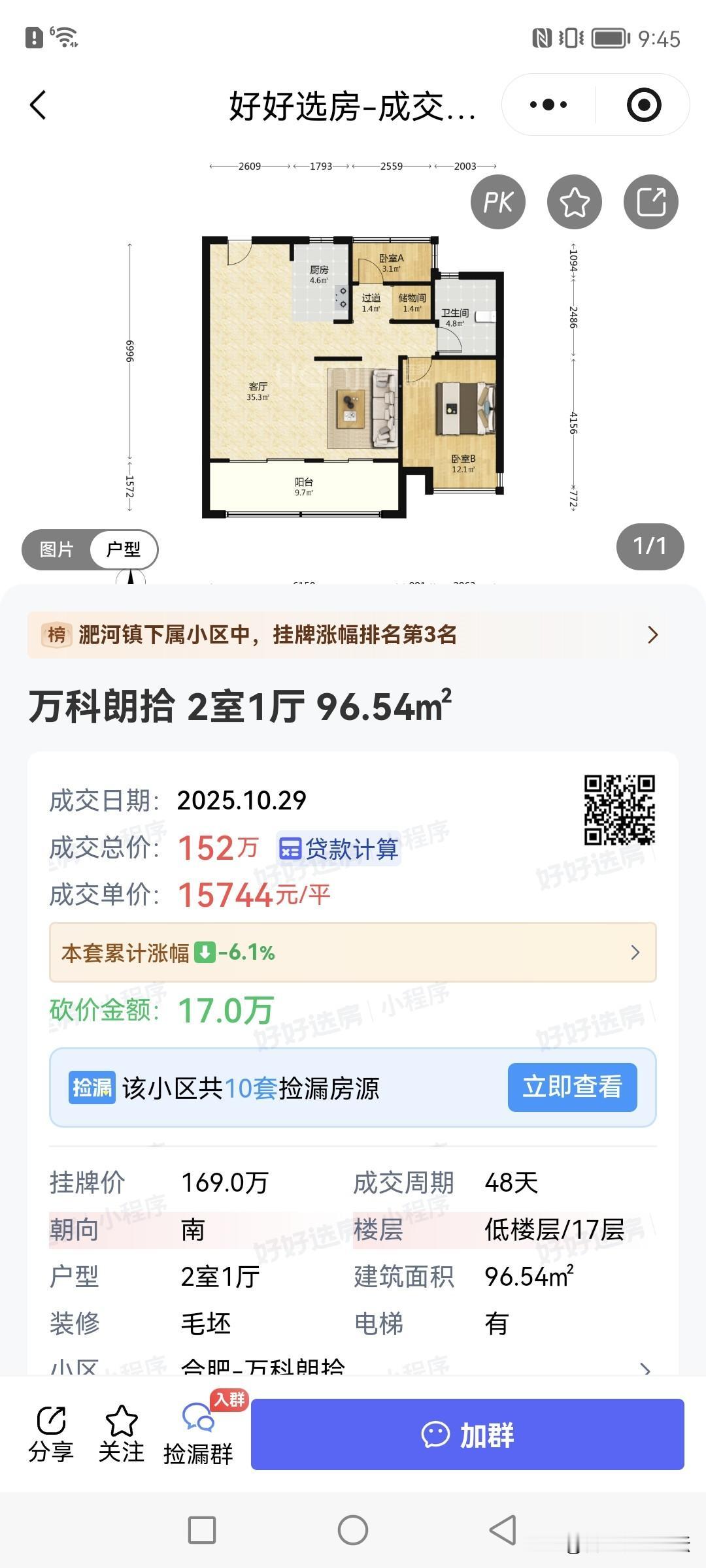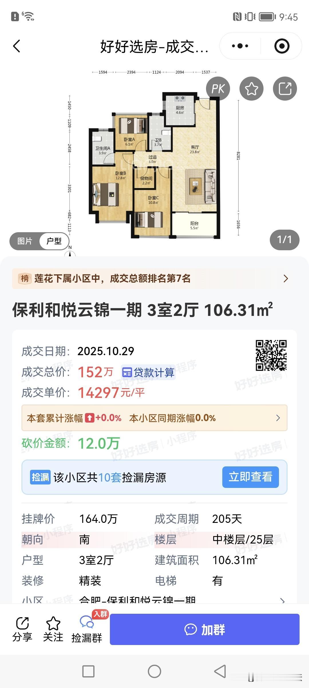 关注几个个人觉得比较热门的小区最新成交情况。 庐阳区的合肥院子洋房单价一万二,这个小区真是名气取的好,别的优点还没发现。 淝河万科朗拾当年摇号摇不到的,就是真的需要市场来教训合肥买房的。现在二手房单价一万五。 肥西明珠广场那,卖位置,单价一万四,其实这都贵,因为是肥西的,现在想想开盘近两万买的是狠人吧! 政务区然后现在基本都是单价两万以下的小区多了,现在真不能说合肥房价高。就是外围高,合肥一直都是这样,郊区和外围受追捧。