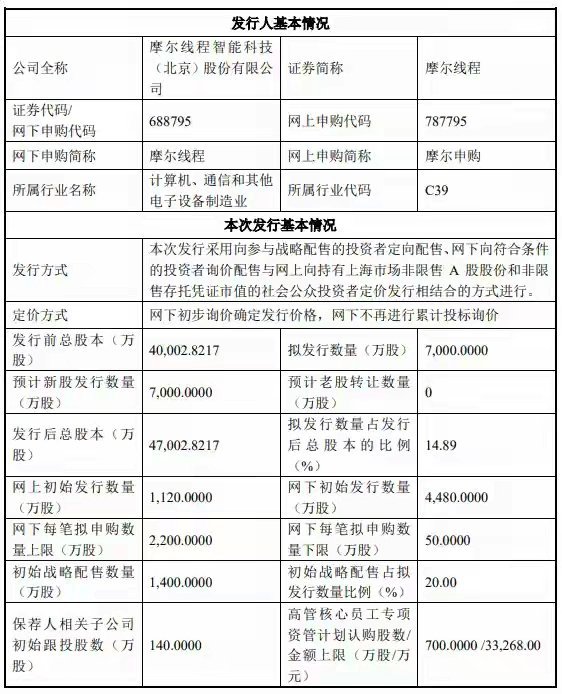 “国产GPU第一股”来了!摩尔线程11月24日开启申购11月13日,摩尔线程在上交所披露科创板上市招股意向书,发行人股票简称为“摩尔线程”,扩位简称为“摩尔线程”,股票代码为“688795”,该代码同时适用于本次发行的初步询价及网下申购。首次公开发行股票初步询价日为2025年11月19日,申购日为11月24日。公司表示,与国际龙头公司英伟达、AMD等企业相比,公司在技术积累、产品性能等方面仍需持续提升。英伟达在GPU领域拥有深厚的技术底蕴和丰富的行业经验,其产品在性能、兼容性以及超大规模GPU集群建设等方面具有较为明显的技术优势和成本优势。公司产品在部分性能指标上已经接近或达到国际先进水平,实现了对部分“卡脖子”领域核心产品的突破。例如,公司MTTS80显卡的单精度浮点算力性能接近英伟达RTX3060;基于公司MTTS5000产品构建的千卡GPU智算集群效率超过同等规模国外同代系GPU集群计算效率。截至本招股意向书签署日,公司不存在由于工艺过时、产品落后、技术更迭、研发失败等原因导致市场占有率持续下降、重要资产或主要生产线出现重大减值风险、主要业务停滞或萎缩的情形。报告期内,公司主要财务指标逐步向好。公司营业收入从2022年的0.46亿元增至2024年的4.38亿元,复合增长率达到208.44%。报告期内,对公司业务经营或收入实现有重大影响的商标、专利、软件著作权等重要资产或技术不存在重大纠纷或诉讼。
