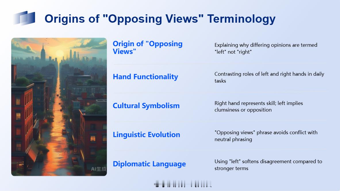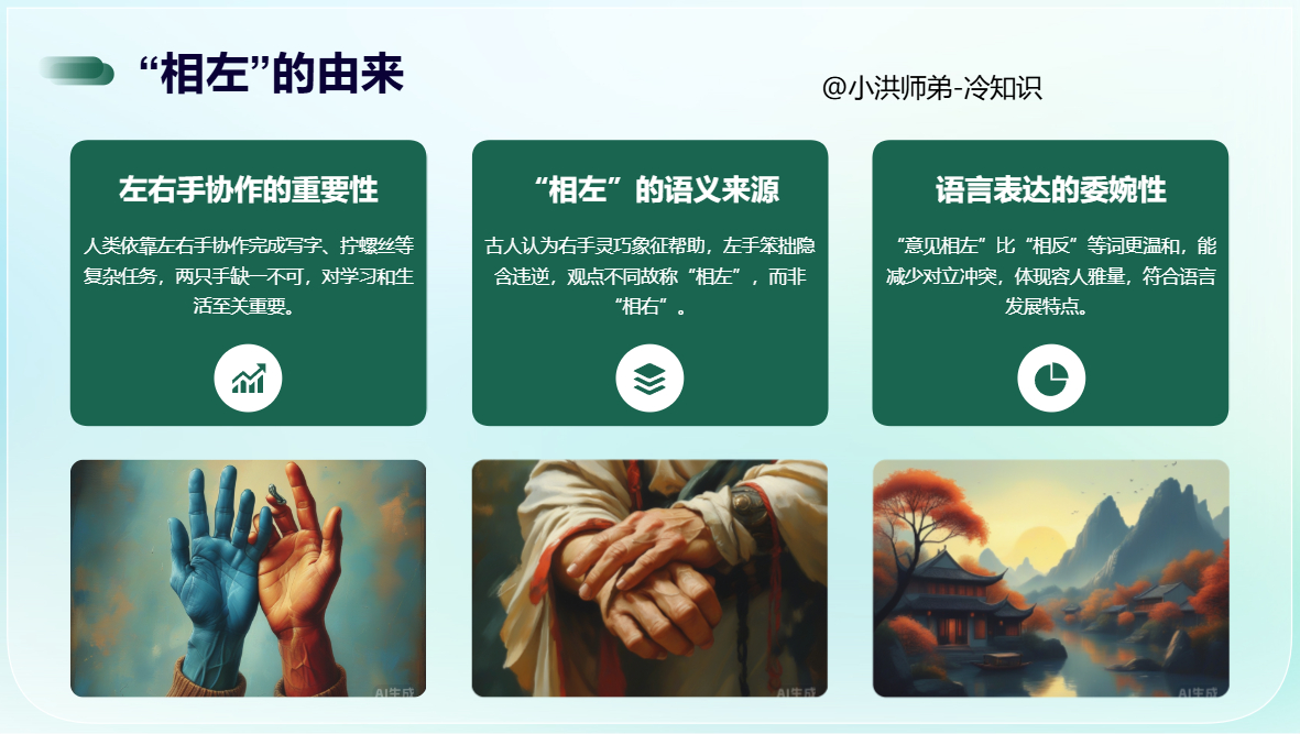 意见不同叫“相左”,而不叫“相右”,这是为什么?我们每个人都有两只手,两只手协作,人类就可以做很多事情。比如一只手按住纸,另一只手写字;一只手握住零件,另一只手拧动螺丝。可以说,左手和右手是不分家的,离开任何一只都会给我们的学习和生活带来极大的不便。左右手的关系是如此密切,我们也常使用它们的引申义。比如意见不同叫相左,那为什么不叫相右呢?据有关学者考证:左右手虽然功能大致相同,但灵活性却有区别。一般而言,我们习惯于用右手,右手的灵活性要远远超过左手。比如我们可以用右手写字、绘画、雕刻、刺绣,用左手就往往难以完成。所以在古人看来,右手具有“灵巧、帮助”的含义,而“左手”由于不具备“右手”的灵活性,往往给人笨拙、违逆的感觉。由此引申到人们的观点不同上,就产生了意见相左的说法。如果有相右的说法,那也应该是表达意见的相同。当然,语言文字的发展过程有其自身特点,为什么没有产生相右的说法可能与我们已经有了大量表达意见一致的词汇有关。“意见相左”这个词语之所以产生,可能是为了委婉地表达不同意见。比如你与某人意见不和,在表达时使用“我与他意见相左”,而不用“相反、相悖”这类感情色彩浓烈的词语,可以有效降低对立和冲突,还可以一定程度上显示出你容人的雅量。|||