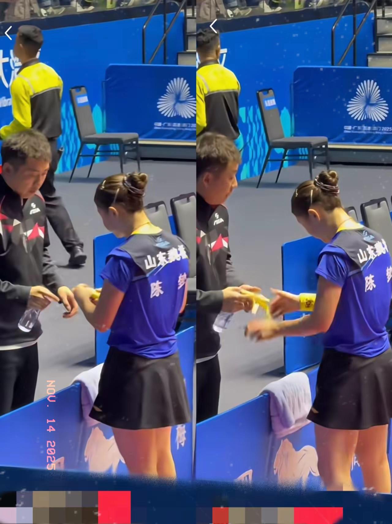 一个动作, 再次证明了陈梦的人品, 陈梦和蒯曼的比赛里,她吃完半根香蕉,是用双手把香蕉到教练手里。 这哪是镜头前的刻意作秀?分明是刻在骨子里的教养,山东大妹子的体贴藏都藏不住。她没想过要表现什么,只是下意识替别人考虑“接过来方不方便”,这份真诚比任何刻意营销都动人。 现在太多人盯着成绩和流量,却忘了细节里的人品才最戳人。陈梦能成顶尖选手,球技是底气,可这份不张扬的善良,才是让大家一直喜欢她的关键——冠军光环会褪色,可刻在骨子里的教养永远圈粉。 你身边有没有这种“细节见人品”的瞬间?你觉得运动员的教养和成绩,哪个更让你好感爆棚?评论区聊聊~
