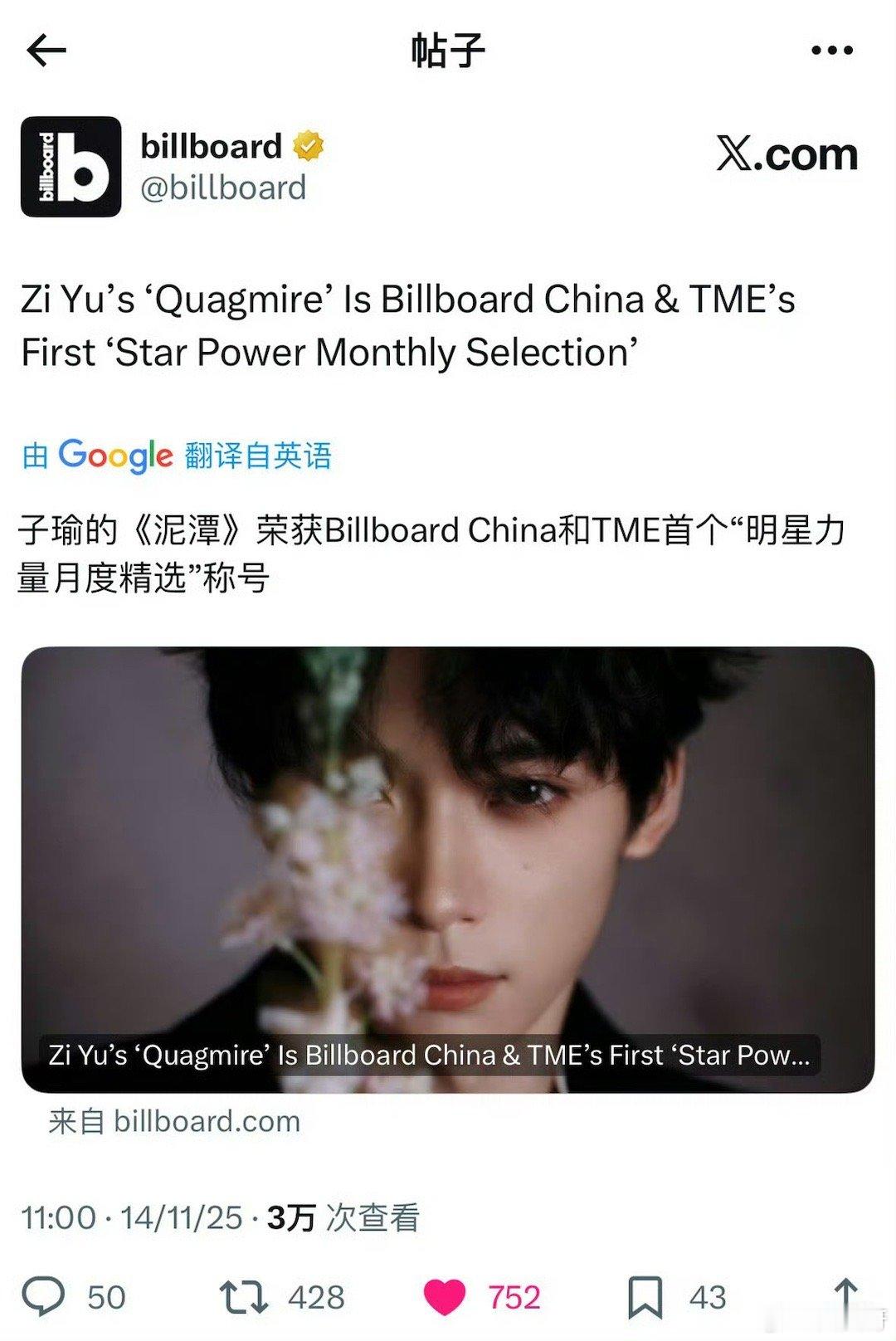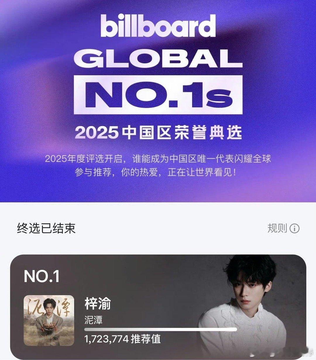 别拿梓渝热饼了,先恭喜这个《泥潭》拿下「Billboard Global No.1s 」中国区代表称号,梓渝让我知道了什么叫做00后也能扛大旗