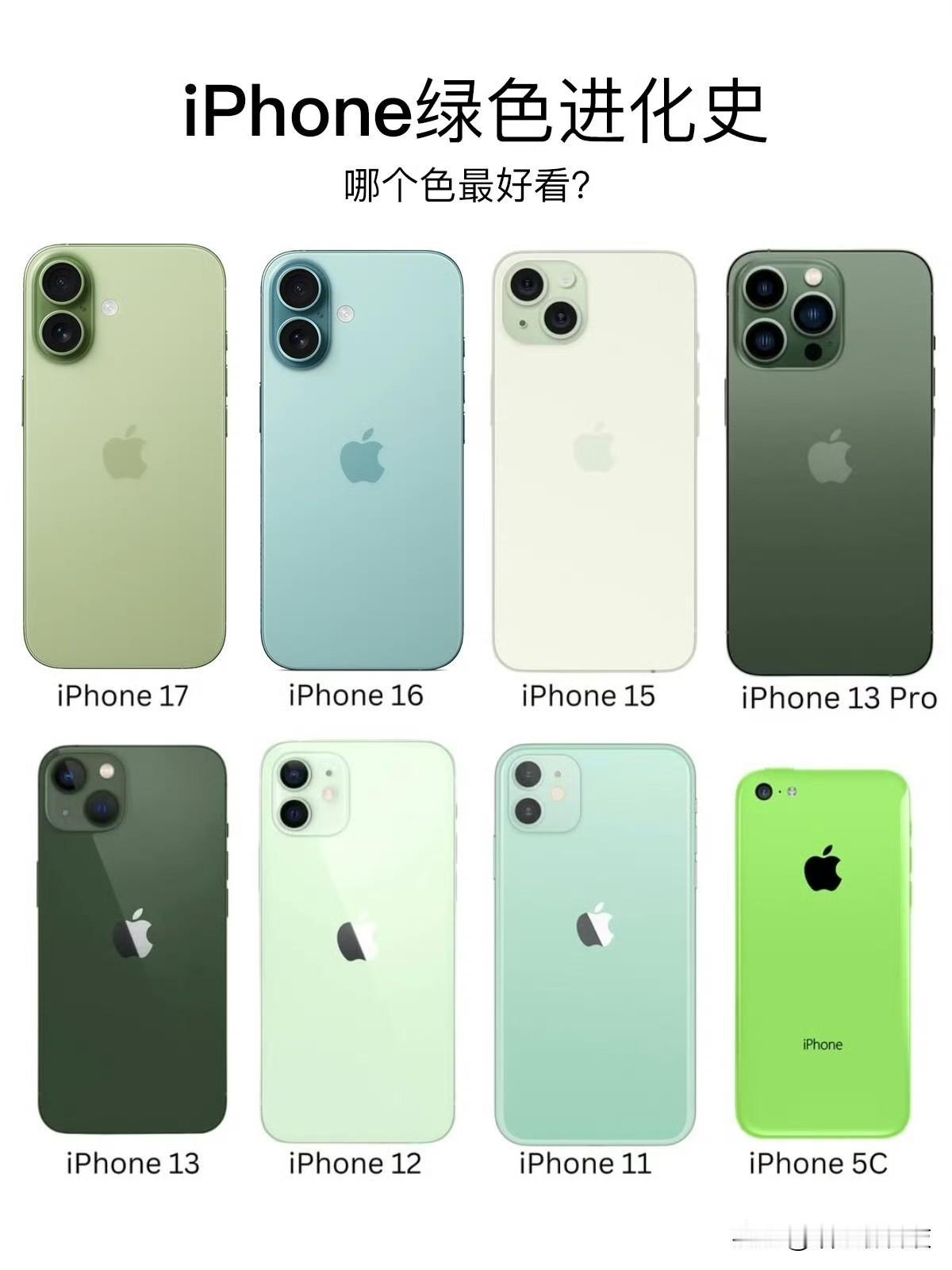 感觉苹果在iphone的配色挑选上还挺迷的... 虽然说每一代的新配色确实需要有一定的区分,但这差异简直太大了~ 其中绿色就玩出了8种不一样的选择。 就个人而言还是挺喜欢像15和12这种偏淡一些的配色,13有点过于深了,而5C虽然亮眼但很缺乏质感。 不知道你最喜欢iphone的那个配色呢?