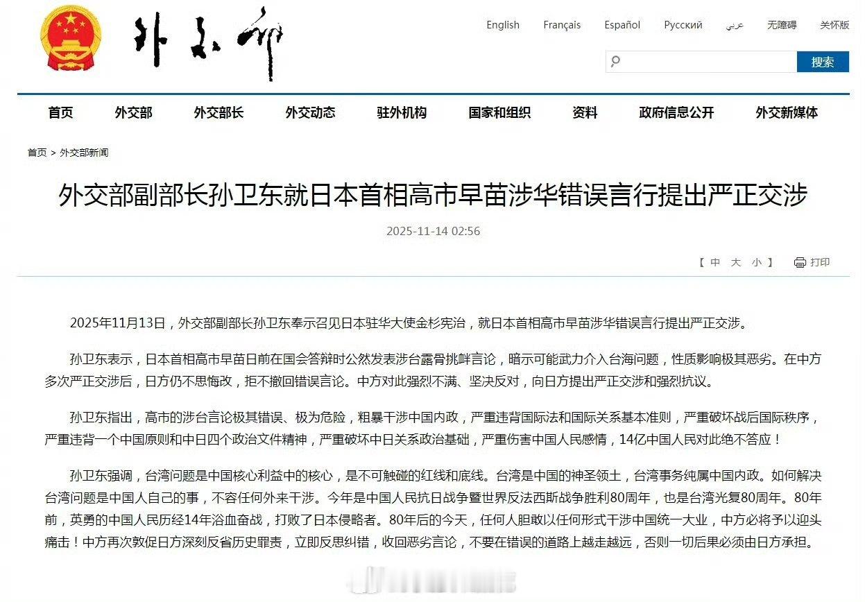 外交部孙卫东副部长“奉示召见日本驻华大使金杉宪治”。
