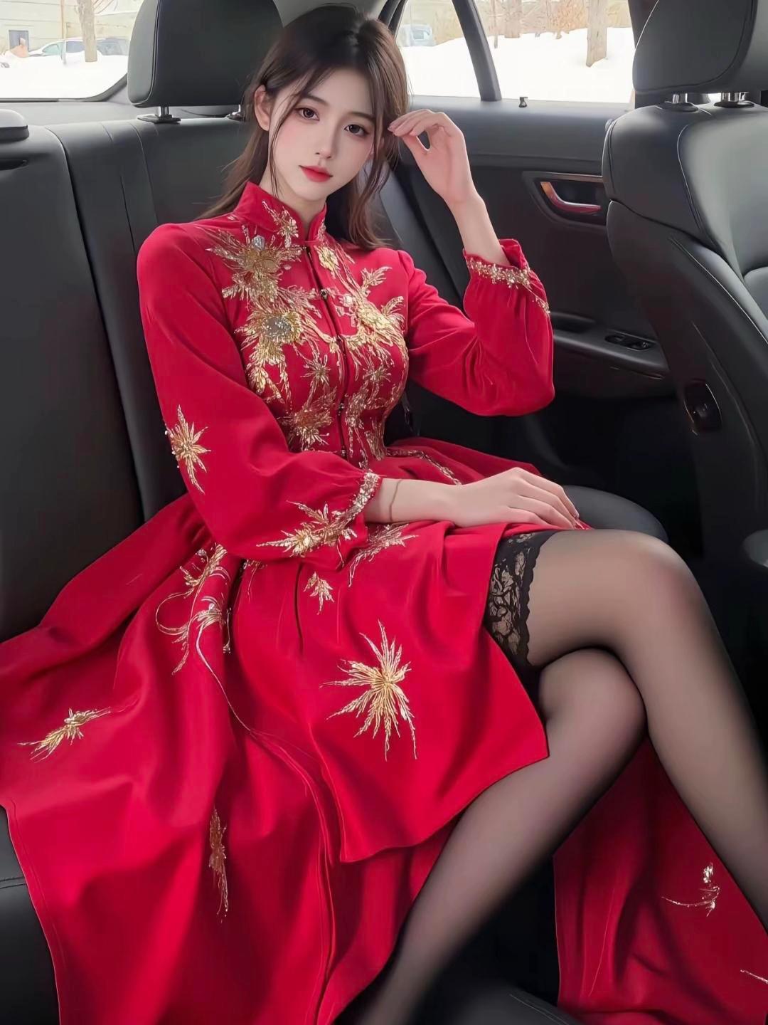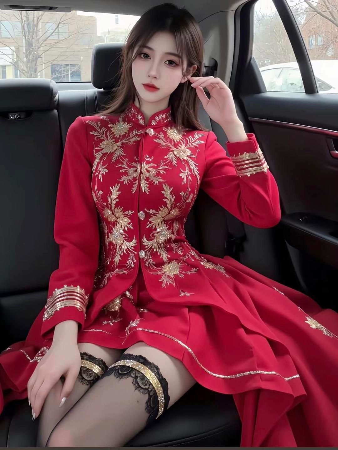 中国红,复古风,美丽又漂亮中国红 红色中国风 时尚中国红套装