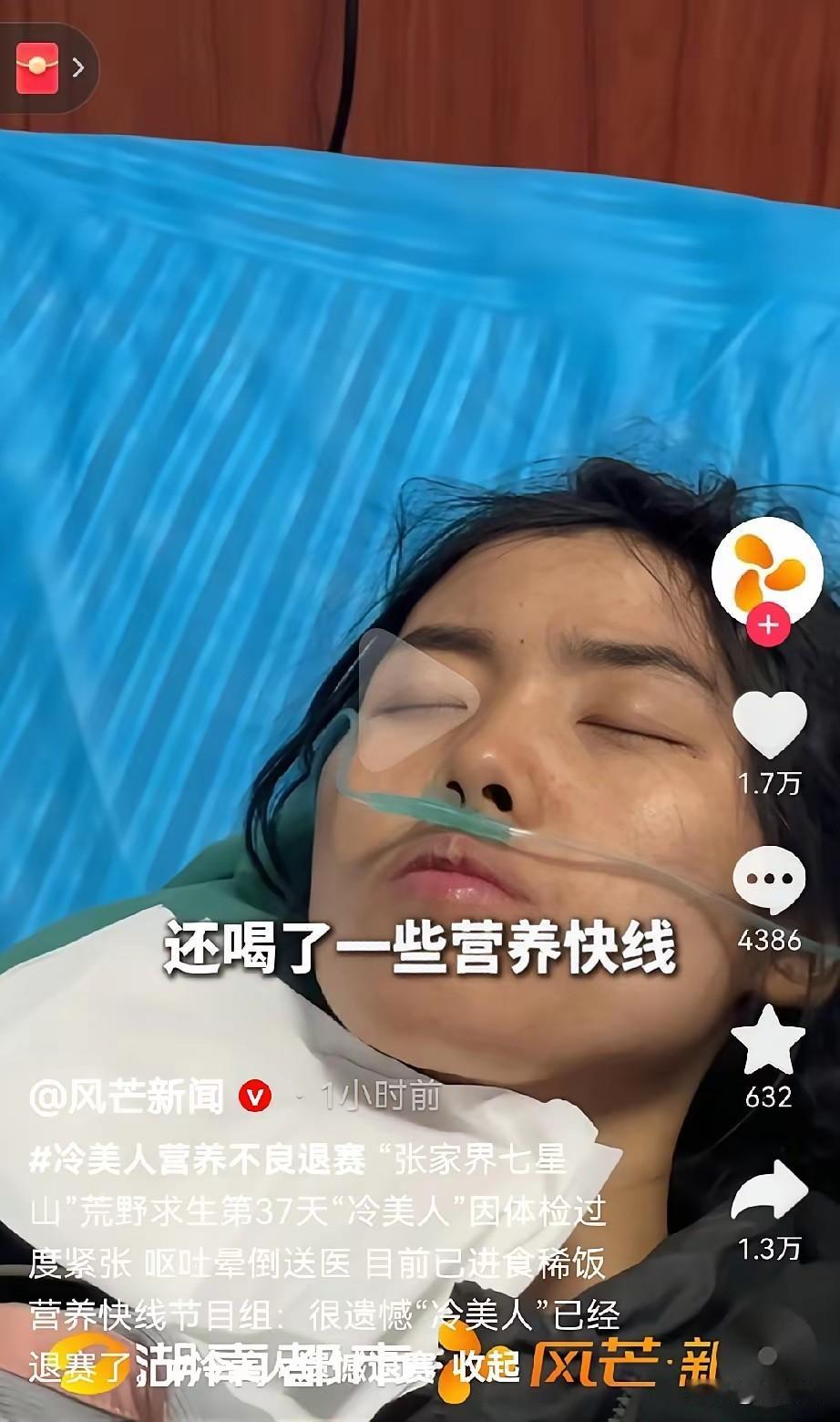 冷美人退赛了,看来我猜错了。 之前我就猜想,要是冠军角逐只剩两人,那必定是冷美人和林北。 可这话刚说没多久,冷美人在体检时就晕倒了。经节目组介入处理,她就算是自动退赛了。 像这种以牺牲身体健康为代价的求生挑战,虽说真实感十足,但我个人并不提倡。