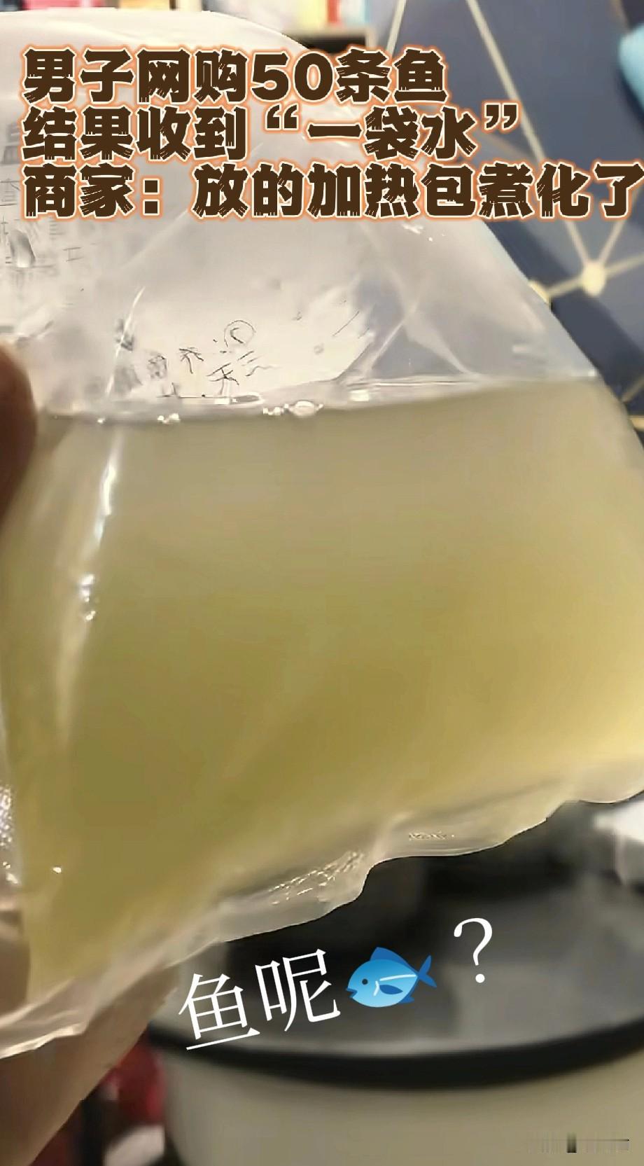 “笑不活了!”辽宁,男子网购了50条观赏鱼,满心欢喜等快递,没想到拆开一看,只有一袋臭水,他还以为是商家漏发了,立马去找客服质问。 不问不知道,一问笑喷了。鱼是从广东发的,商家说东北天太冷,会把鱼给冻坏,专门放了加热包保温,结果快递走了4天,加上买的是那种小巧的白云金丝鱼,这加热包直接变成“煮鱼包”,把50条鱼全给烫熟、煮化了,最后就只剩水了。 不过商家还是挺干脆的,直接给退了款,还提醒东北的朋友们想买,最好还是去线下实体店买,不建议网购,不然大概率不是养鱼,是收鱼汤。 有网友调侃,广东人天生会煲汤,广东发货,东北收货,主打一个现煲海鲜汤。 “鱼:这辈子走得最错的路,就是从广东到东北的快递路,没败给严寒,败给了商家的暖心加热包。” 商家也是好心,考虑到东北冷,但没搞清这鱼也怕热,没算好加热包的时长。网购活物本来就麻烦,尤其是南北温差大的时候,不光要选对保温或降温的法子,还要提前搞清楚这些小生命的习性,不然很容易翻车。 每一条小生命都值得被认真对待。网购活物前,最好要问清商家的保温或者降温措施,实在没把握,像商家提醒的那样,线下实体店挑一挑,反而更靠谱。