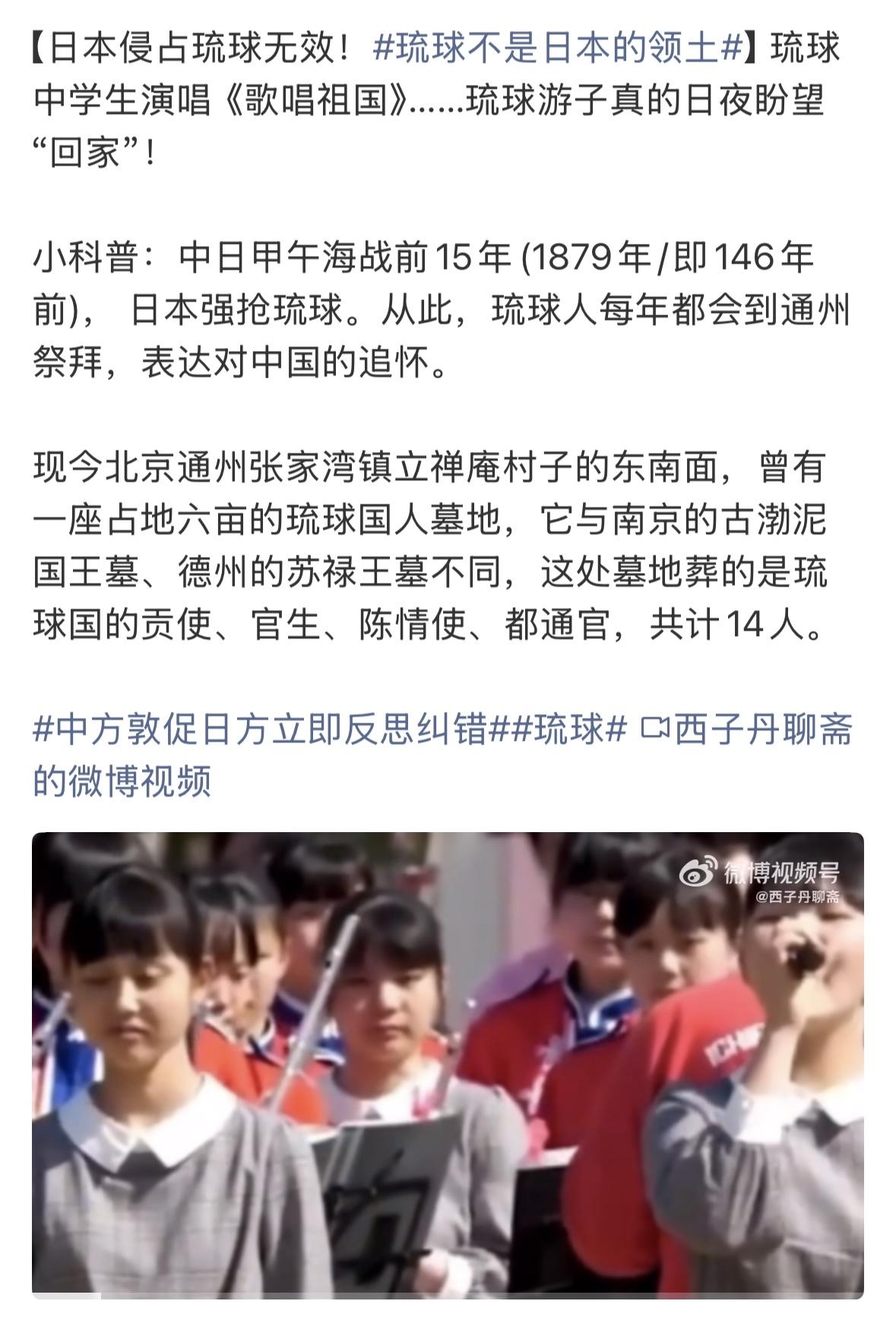 琉球是主权独立的王国,主权和治权都不是日本的,但是,声称琉球是中国神圣领土,要归还中国的人们也是坏种,故意制造中国威胁论,是配合高市早苗等日本右翼极端势力,制造日本生存危机恐慌,这些人就是日本右翼极端分子得残渣。我们支持琉球独立,但是,绝对没有对琉球有主权主张。
