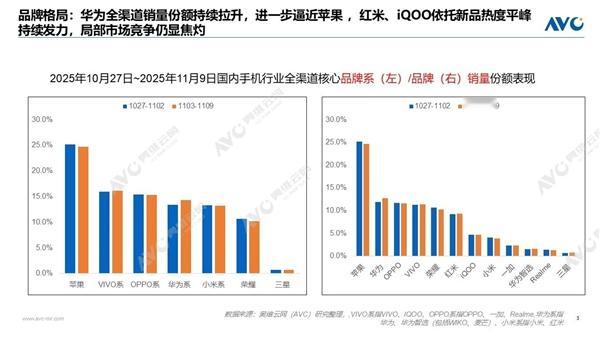 据奥维云网(AVC)研究显示,“双11”手机销量周榜出炉:苹果断层第一、华为第二iPhone的品牌竞争力一直都是最强的,没有之一