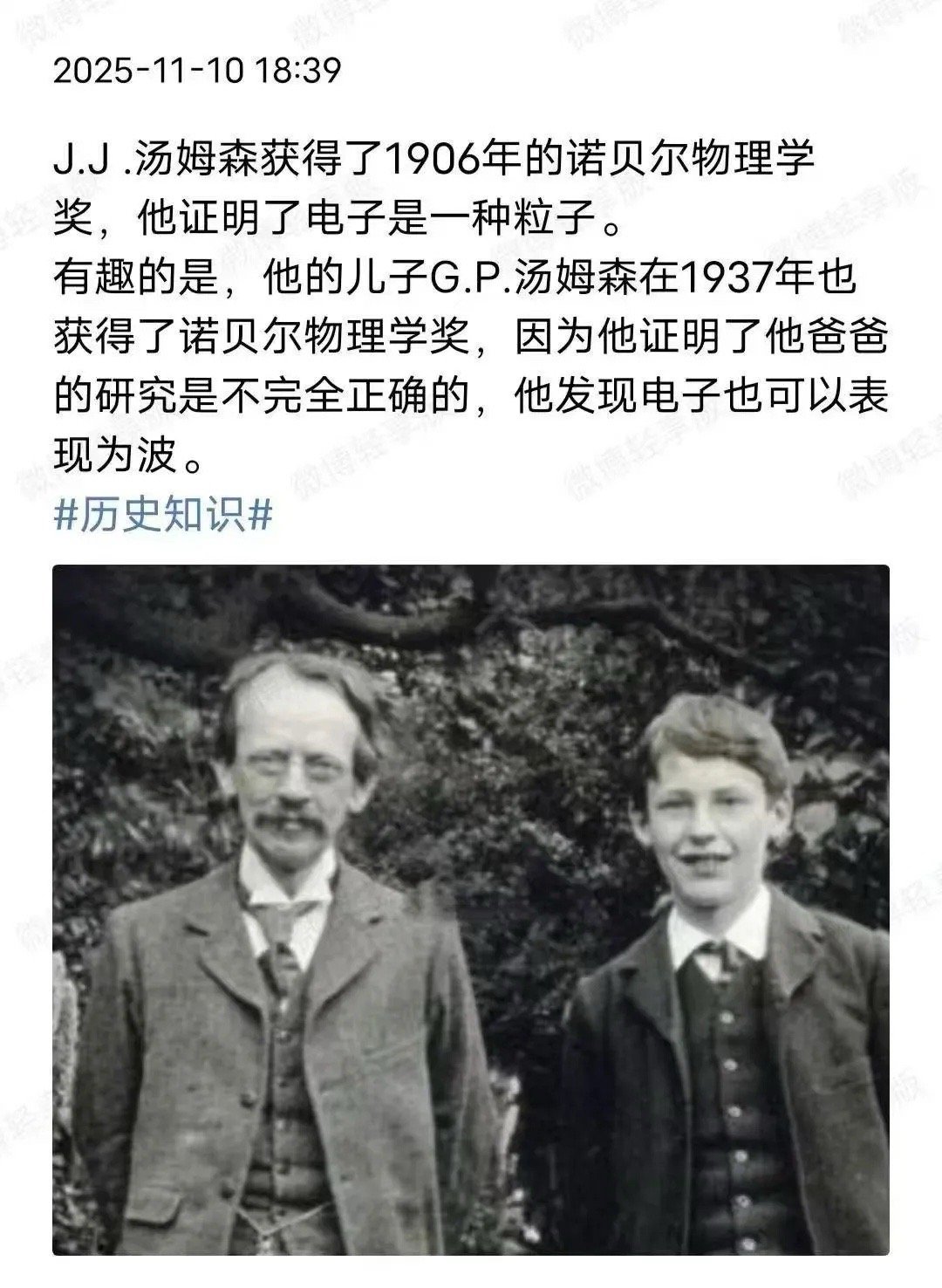 史上绝无仅有的诺贝尔物理学奖父子档得主~英国的汤姆森父子。