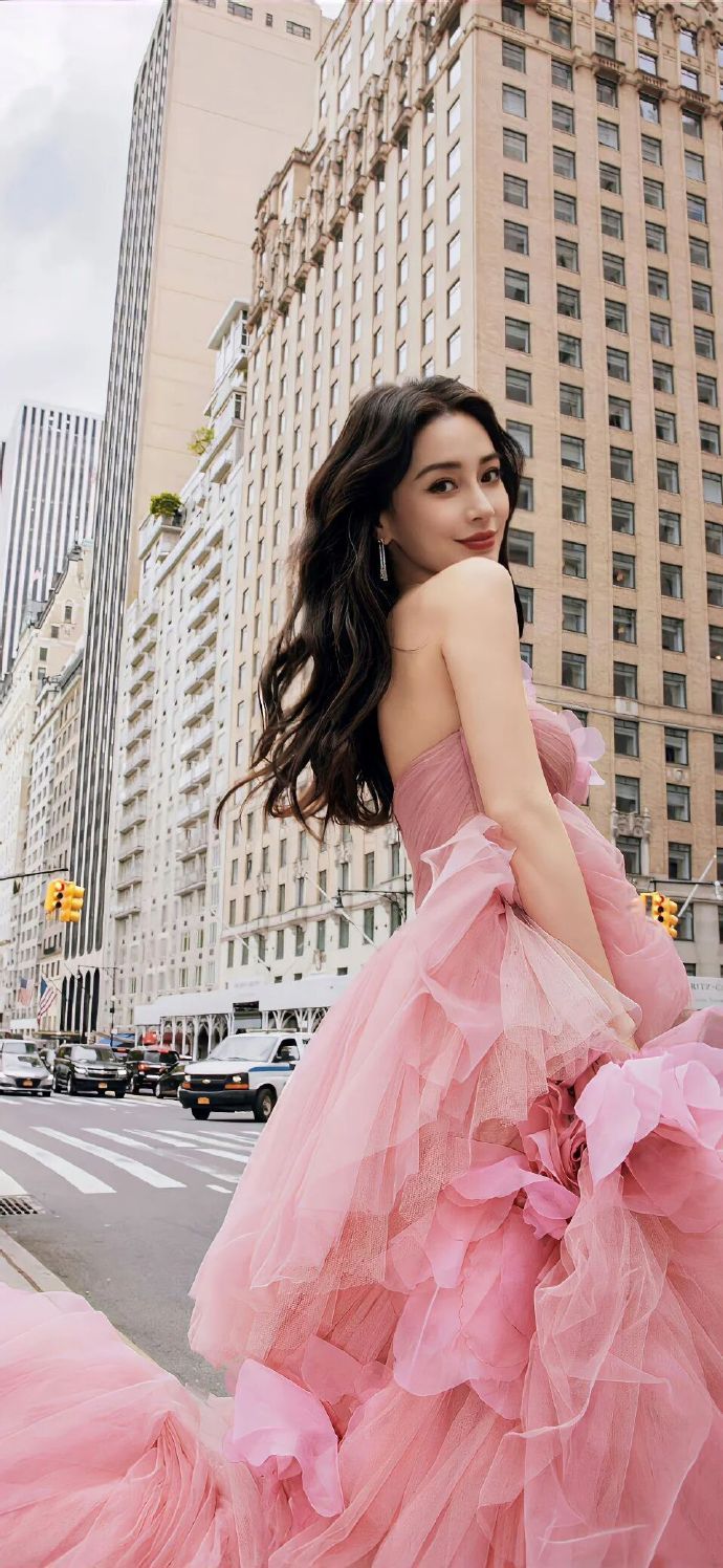 刘亦菲把死亡玫粉穿出了定制款的感觉,这种颜色普通人穿上分分钟黑三度,她居然能穿出