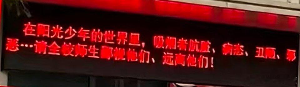广西一职校滚屏宣传纹身者是人渣垃圾、鄙视远离吸烟者!