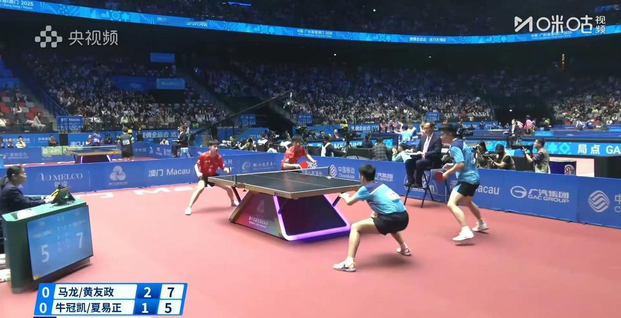 真没想到,于何一能从王楚钦手里拿到一局! 比赛还在进行中,前两局王楚钦11-9,10-12被河南队的小将于何一追平! 这是2025第15届全运会乒乓球男团A组小组赛! 今晚六点开始的第一盘男双比赛中,北京队的马龙/黄友政组合3-1击败河南队的牛冠凯/夏易正,目前大比分北京八喜队1-0领先河南队, 第二盘由北京队的王楚钦🆚河南队的于何一, 第一局两人打成6-6平,然后王楚钦4个发球直接得分,厉害[赞]! 而于何一也让人眼前一亮,他的相持能力有一定功底,很多球以为要丢了,他还救回来,落点还很牛[赞]。 果然!第二局王楚钦10-12就被于何一扳平了! 评论区继续播报战况!王楚钦加油!于何一加油!