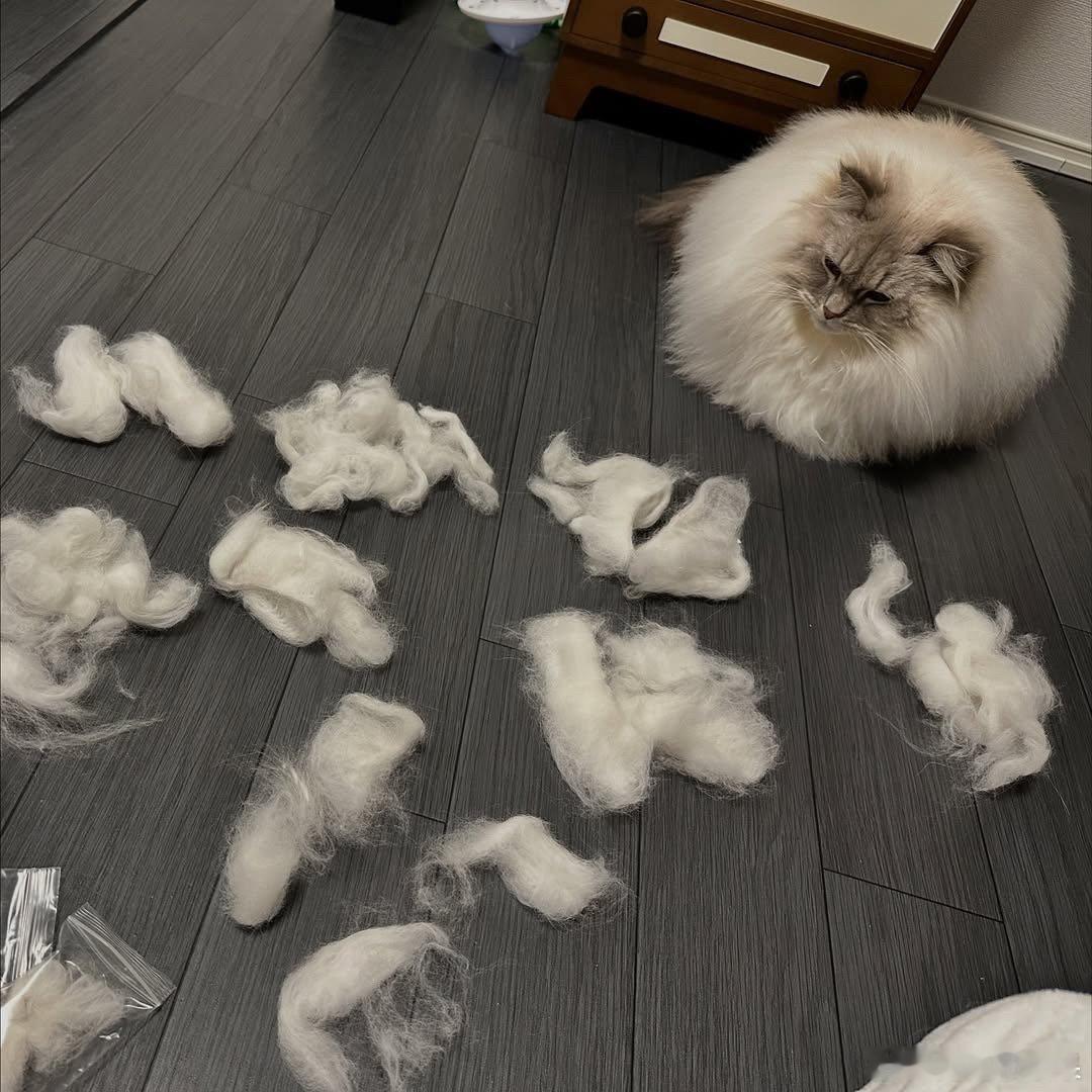 西森猫和她梳下来的毛..cr:eleven11neko