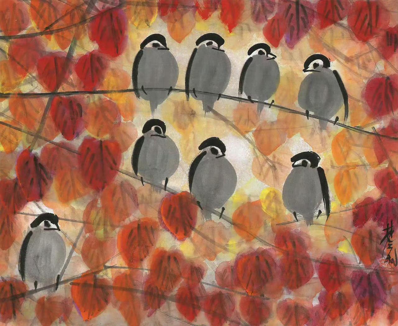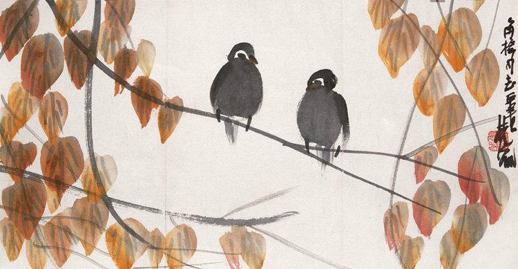 林风眠画中的秋叶小鸟,自在逍遥🍂绘画国画