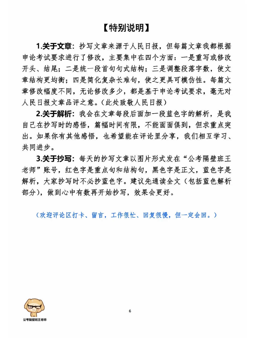 这里是公考隔壁班王老师独创的“每天半小时・申论80分”抄写团,欢迎加入我们!