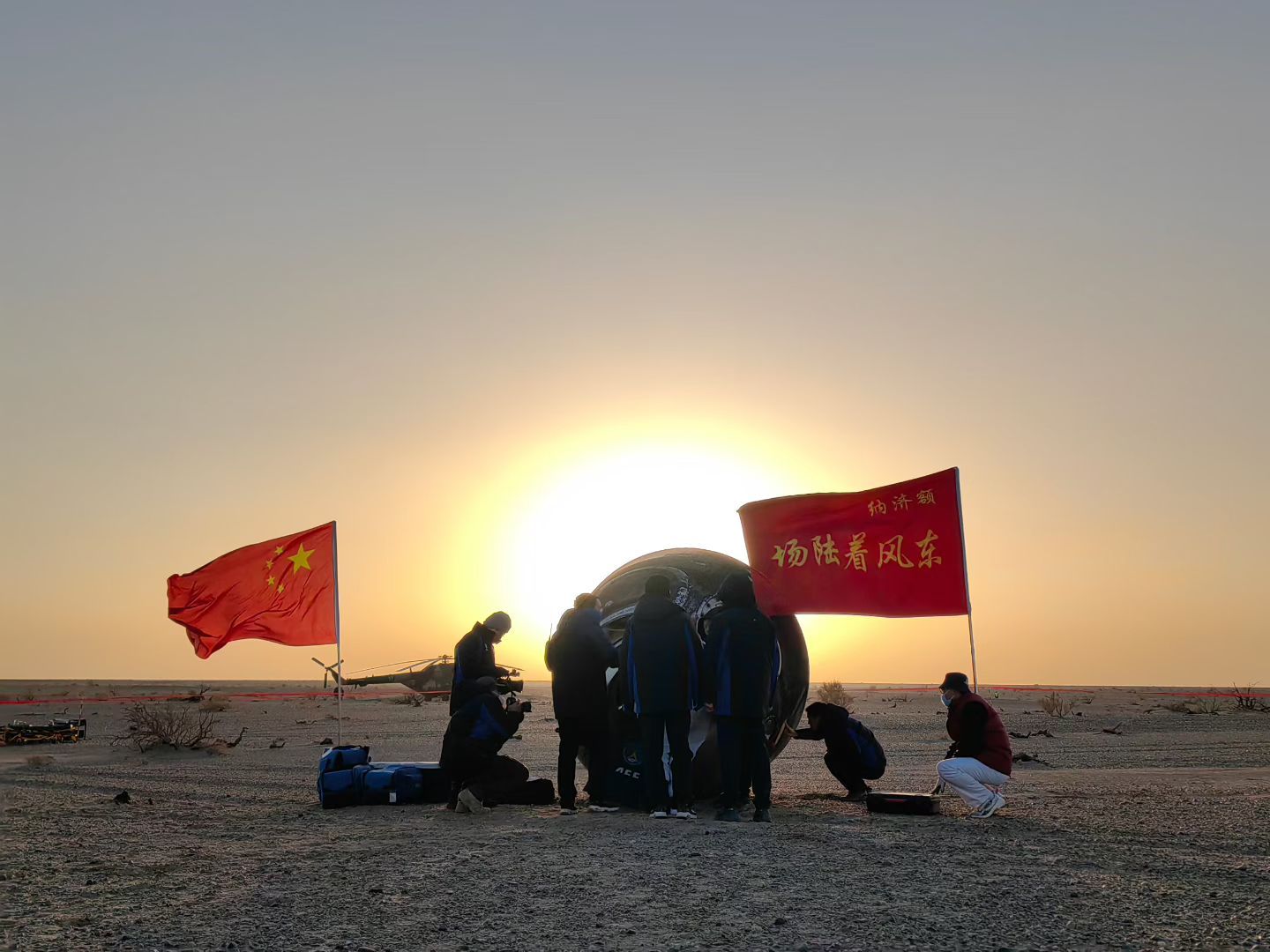 航天人的浪漫:昨夜火箭穿月穹,今夕飞船落日圆!~ 【发射 神舟二十一号的火箭发射以及神舟二十号搭乘的神舟二十一号返回舱着陆时的“穿月”以及“落日圆”】