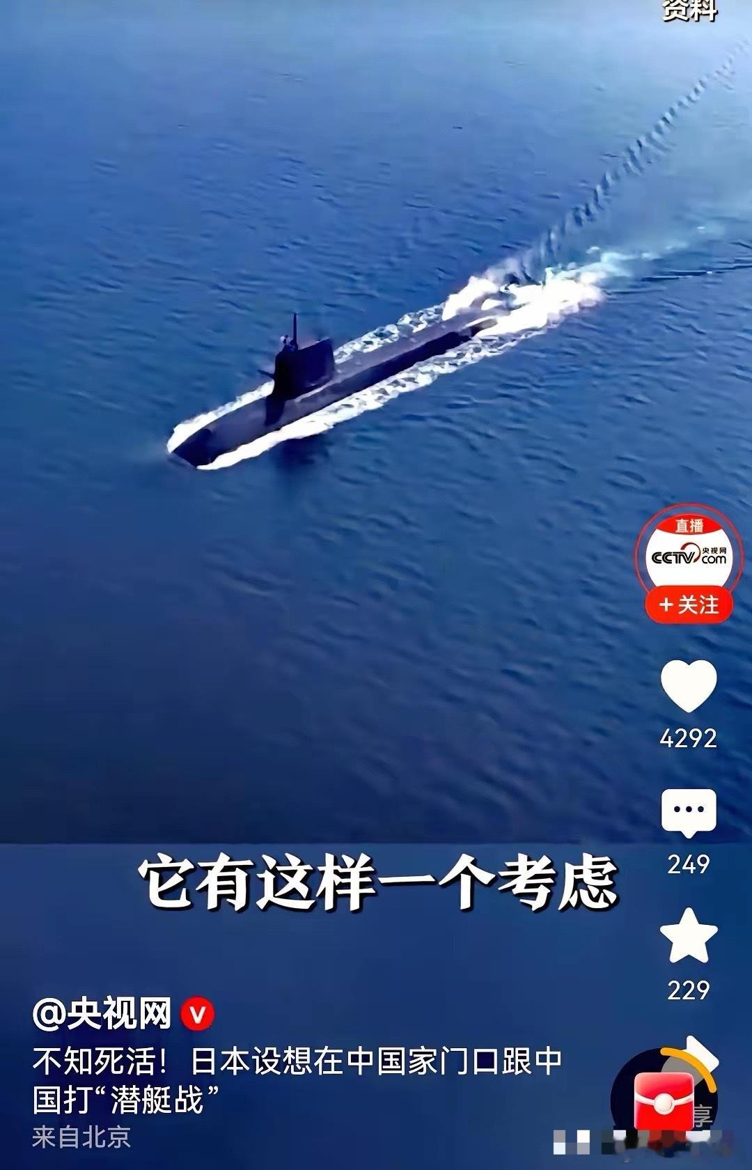 央视对日本用上了“不知死活”…日本一直想用潜艇战打败中国,这既有日本自身武器局限性考虑,也是执行美国的战略构想。所以,日本长久以来一直大力发展反潜和潜艇,美国也是默认的。但时局不一样了。如果日本现在仍想在西太平洋和中国开展广泛的潜艇战,并达到牵制及战胜的目的,那可就大错特错了。还是那句话,中国对有狼子野心的敌人历来就是动手后绝对不会客气…朋友们,你们对此事怎么看?