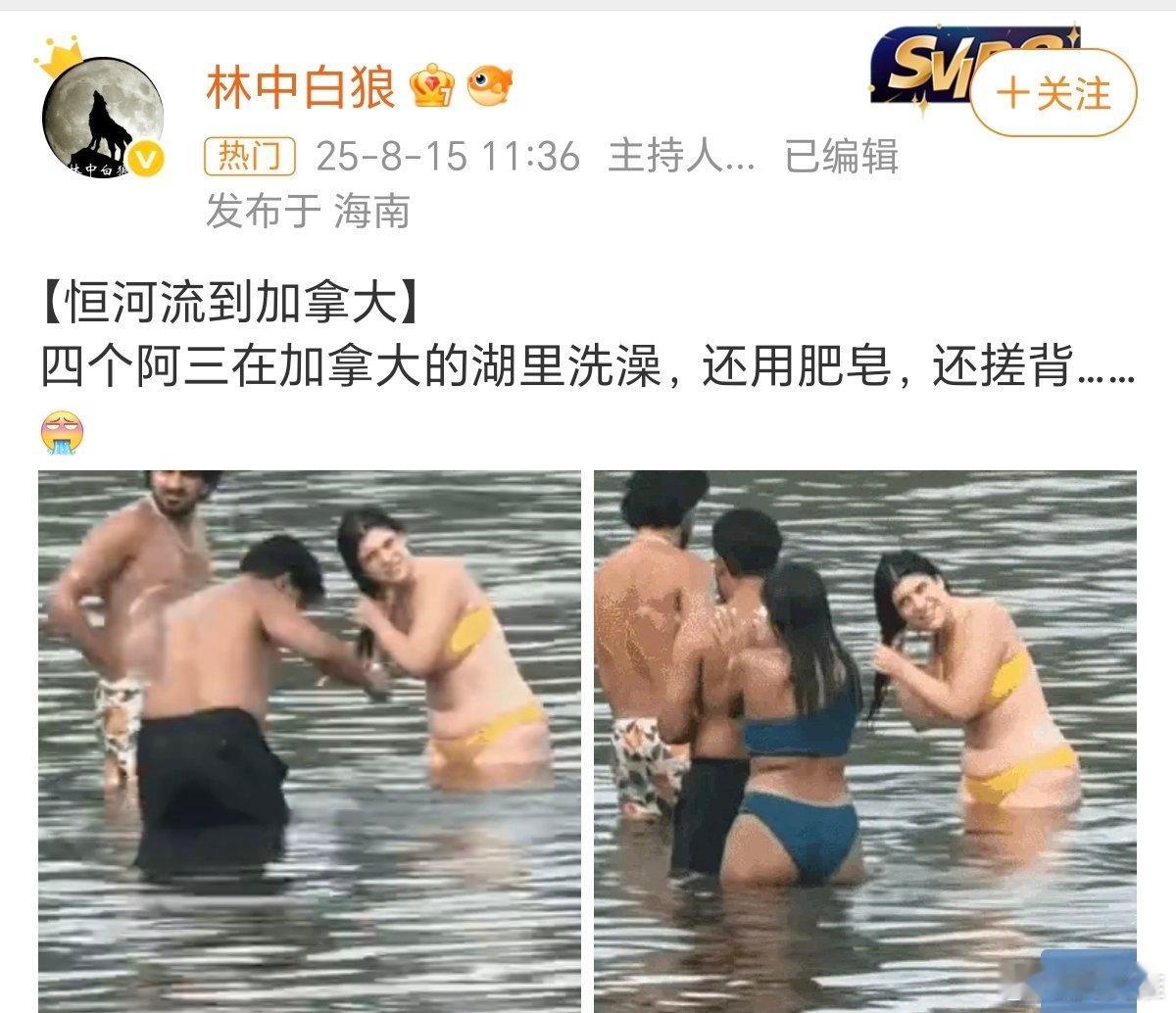 三哥这是把庐山风景区的河流当恒河了吗???他们不管去哪里都喜欢下河洗澡