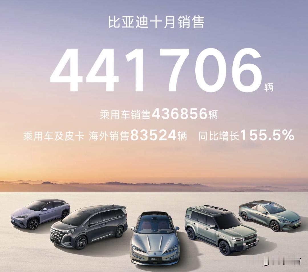 笑不活了!月销44万还被唱衰?比亚迪用销量打脸质疑者! 十月狂卖44万台,直接创下年内销量峰值,比亚迪这波操作简直杀疯了!1-10月累计卖370万辆,稳坐国内销冠宝座,海外市场更猛,单月8万+台还暴涨155.5%,这势头谁看了不喊句“牛”? 总有人盯着550万年度目标唱衰,说什么库存堆成山、增速不行了,纯属睁眼说瞎话。拜托,人家基数都40万+了,还想跟月销2万的新势力比增速?这就像让大象跟兔子比蹦跶,根本不是一个玩法。 我觉得吧,现在黑比亚迪的要么是不懂行,要么是别有用心。人家一边靠仰望、方程豹突破技术天花板,一边还试水皮卡、日本K-CAR拓展版图,全栈自研+垂直供应链在手,妥妥的长期主义玩家。 造车又不是短跑,单凭几个月数据就下定论也太草率了。比亚迪现在瞄准的是全球市场,跟丰田大众正面刚,这才是重头戏。那些唱衰的,还是先等自家车企能稳定月销10万再说吧! 比亚迪 比亚迪销量 比亚迪海外销售 比亚迪营收