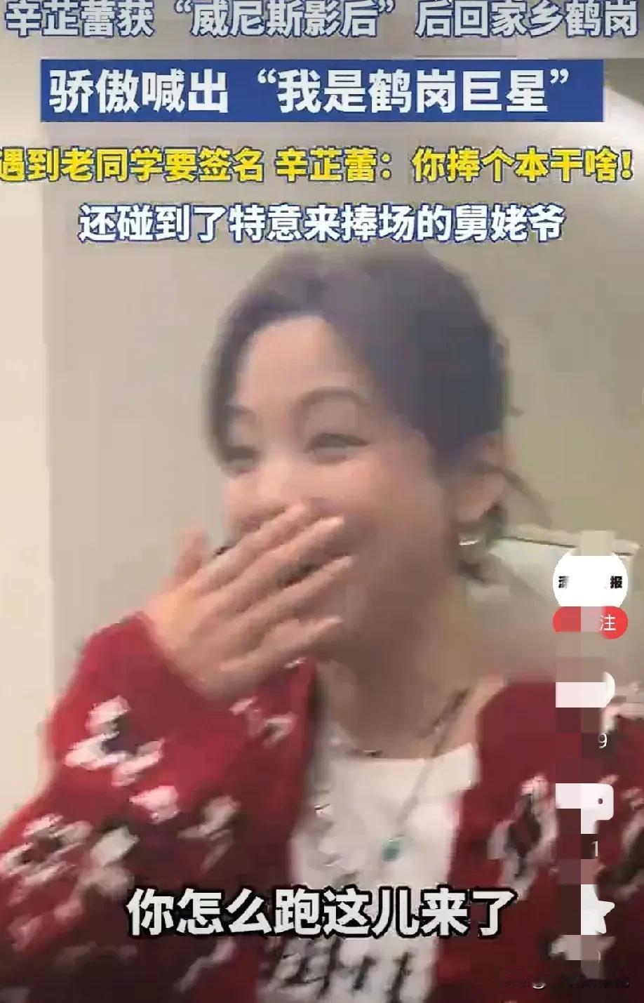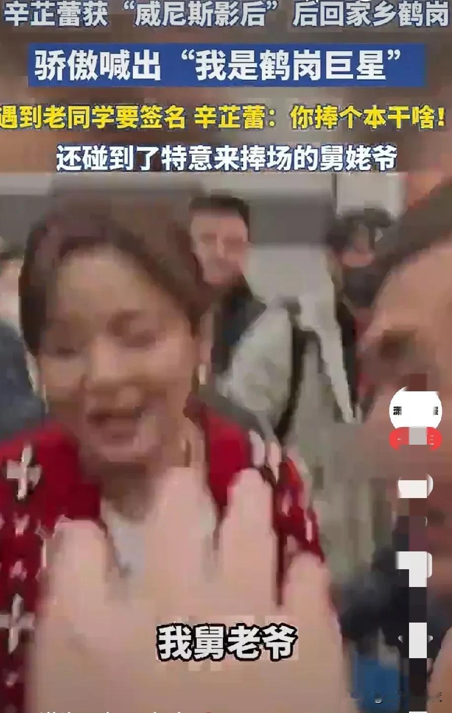 辛芷蕾给所有人提了个醒, 无论你再有名,无论你再有钱, 回到家乡也千万不要忘本。 很多人都不理解辛芷蕾为啥能得大奖,看了她回家的真实状态,我觉得,那就是实至名归呀。 这次回鹤岗路演,她自然不做作,大大方方说:我是鹤岗巨星辛芷蕾。一点架子都没有,见到舅姥爷和同学,还是那么亲热,该唠嗑唠嗑,一点明星的谱都没有。 这种真实劲,真不是装出来的。 人红了还能记住根在哪儿,见到老街坊老亲戚还和以前一样,这就叫不忘本。 这样的人,她就该拿大奖,你们说是不是?