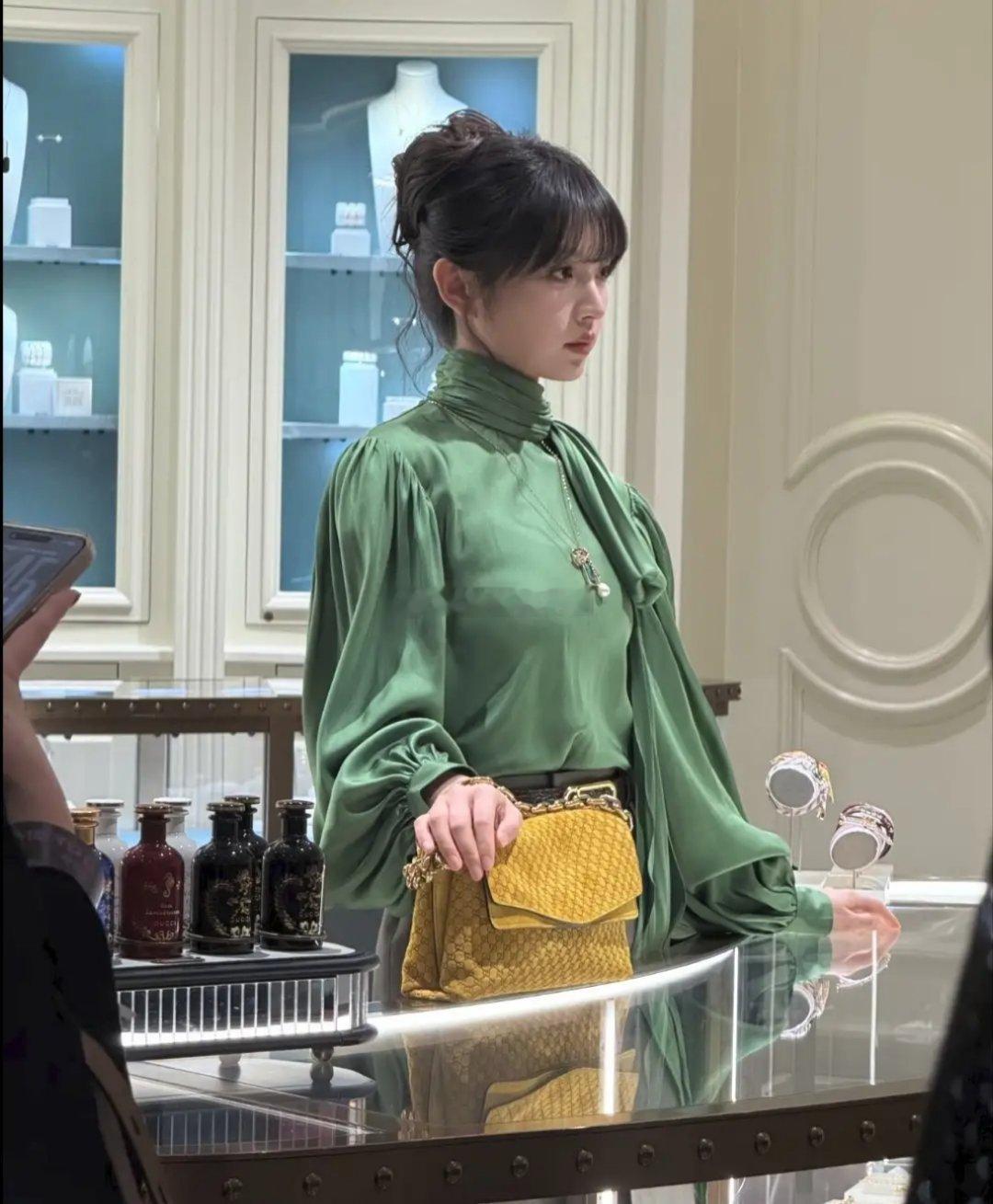 田曦薇亮相上海活动,一身绿色上衣衬得她贵气十足,举手投足间尽显千金大小姐风范,优雅又亮眼,让人眼前一亮。