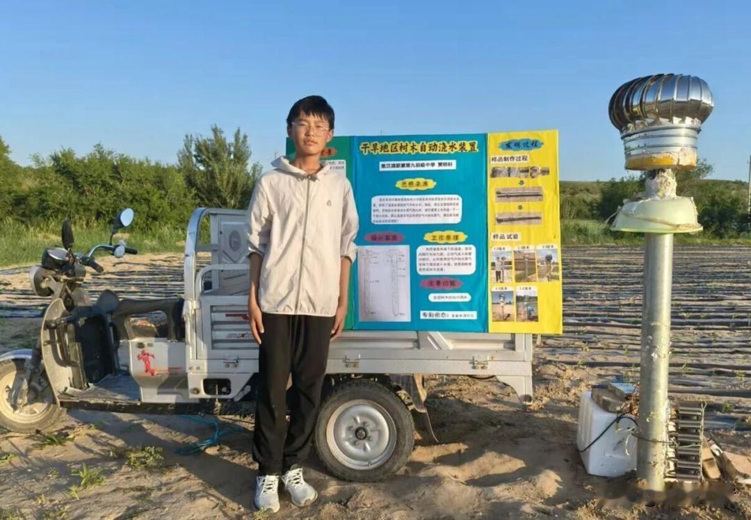 14岁“沙漠小创客”炸场国际!锅盖灵感拿捏全球金奖! 救命!内蒙古14岁少年贾明轩也太会整活了!家在科尔沁沙地边缘,常年干到树都难活,从小看着治沙人、农牧民扛着水桶跑断腿浇树,这娃暗戳戳发誓要搞个“懒人神器”。 万万没想到,灵感居然藏在厨房!看妈妈做饭时锅盖凝水珠滑落,瞬间打通任督二脉,把物理课冷凝知识搬过来,脑洞大开想“偷”空气中的水浇树。凭着钢管、废塑料瓶这些“破烂”,在老爸和老师的助攻下反复试错,前四次全翻车,第五次终于收集到第一滴水,直接把梦想照进现实! 要知道纽伦堡发明展可是“发明界顶流赛事”,和日内瓦、匹兹堡发明展并称三大巨头,这次540多个狠活同台battle,他硬是凭着这个接地气的装置拿下青少年组金奖。这哪是小发明,简直是给家乡量身定做的“解渴神器”!比起那些花里胡哨的创意,这种贴着生活痛点的创新,才是真的少年强则国强!