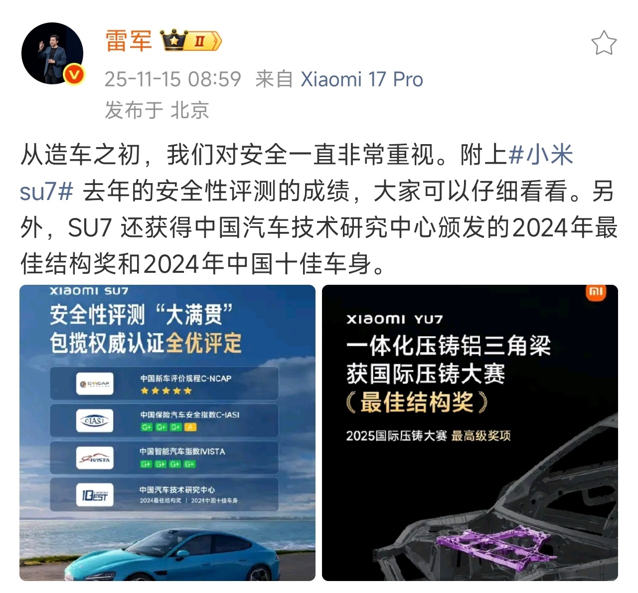 小米汽车发布会上安全反复在讲,雷军直播的时候也是反复在说安全,奈何小黑子被洗脑太