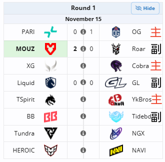 提醒一下大家,PGL所有比赛都是顺延的,只要上一个bo3打完了下一轮就会紧接着马上开始,不过瑞士轮前几天分主、副舞台,比如Mouz vs RG的比赛就是在副舞台进行的,所以这场bo3结束后接的是副舞台的下一轮比赛也就是Liquid vs GL,想看XG的同学则要等PARI vs OG的bo3结束(目前双方在打第二局,大概率要图三了 ),具体主副舞台安排看液体维基的前后顺序即可,我也给大家简单标注了一下
