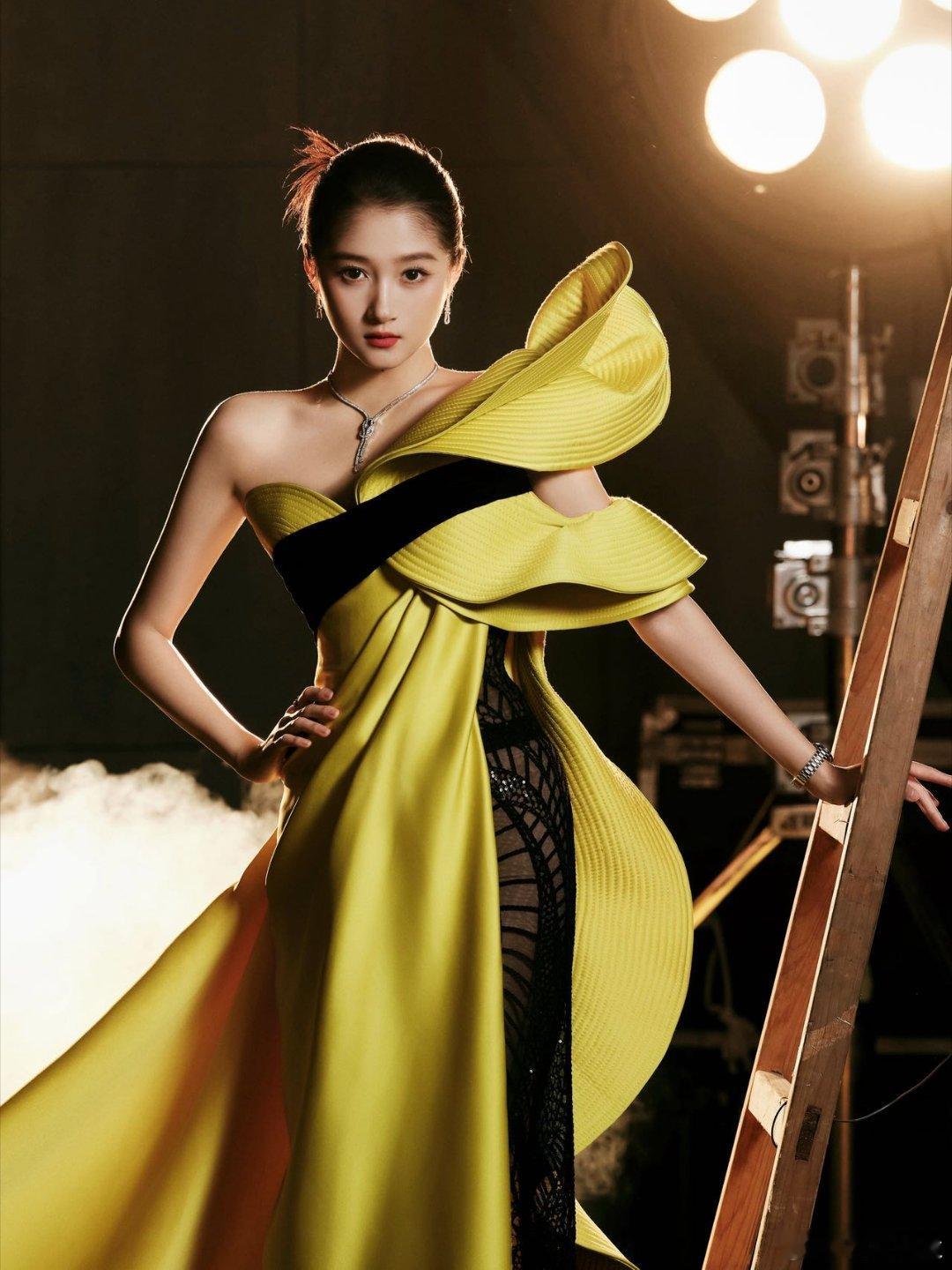 被关晓彤这身造型美晕!鹅黄裙身似暖阳洒落,单侧立体花瓣设计太吸睛,搭配高马尾清爽利落,暗夜中宛如盛开的绿玫瑰,明媚又耀眼✨