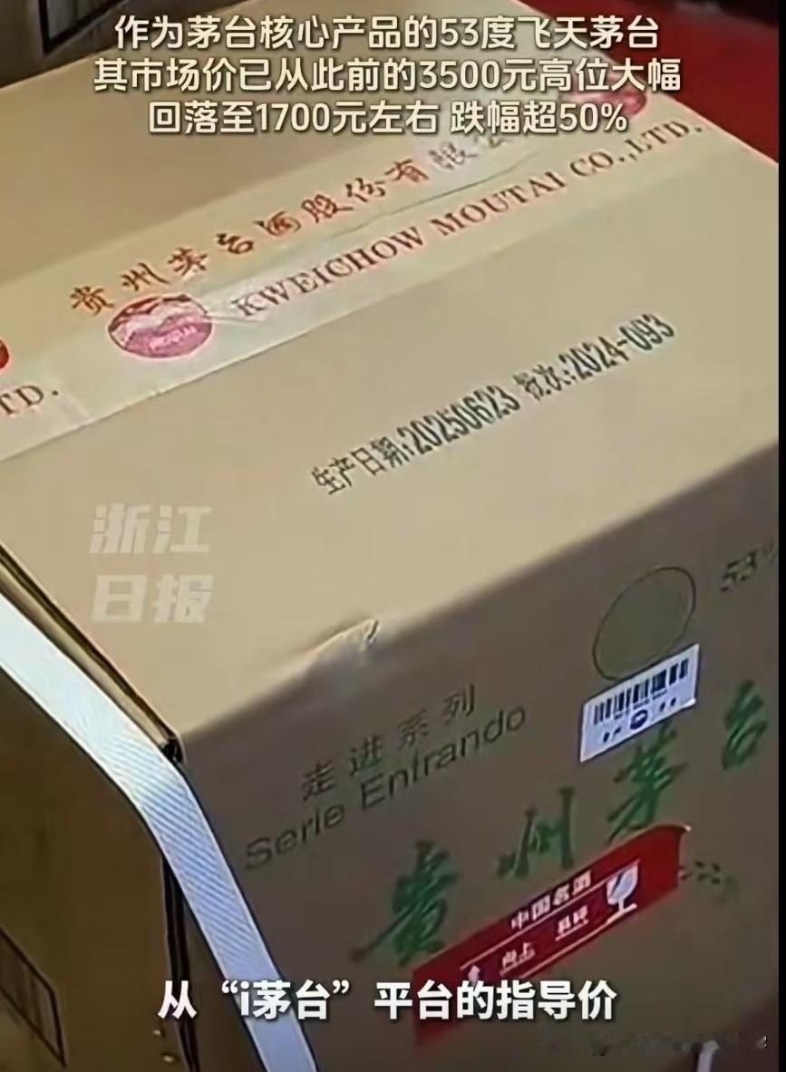飞天茅台价格腰斩! 茅台经销商劝别囤酒了 11月14日,浙江杭州。近期,“飞天茅台价格跌破发行价”“飞天茅台价格大幅下跌”等话题持续引发市场关注。 据杭州白酒资深经销商赵清玉介绍,作为茅台核心产品的53度飞天茅台,其市场价已从此前的3500元高位大幅回落至1700元左右,跌幅超50%。 经销商建议,大家不要囤酒了,投资属性已减弱。 大家怎么看?欢迎评论区留言讨论!