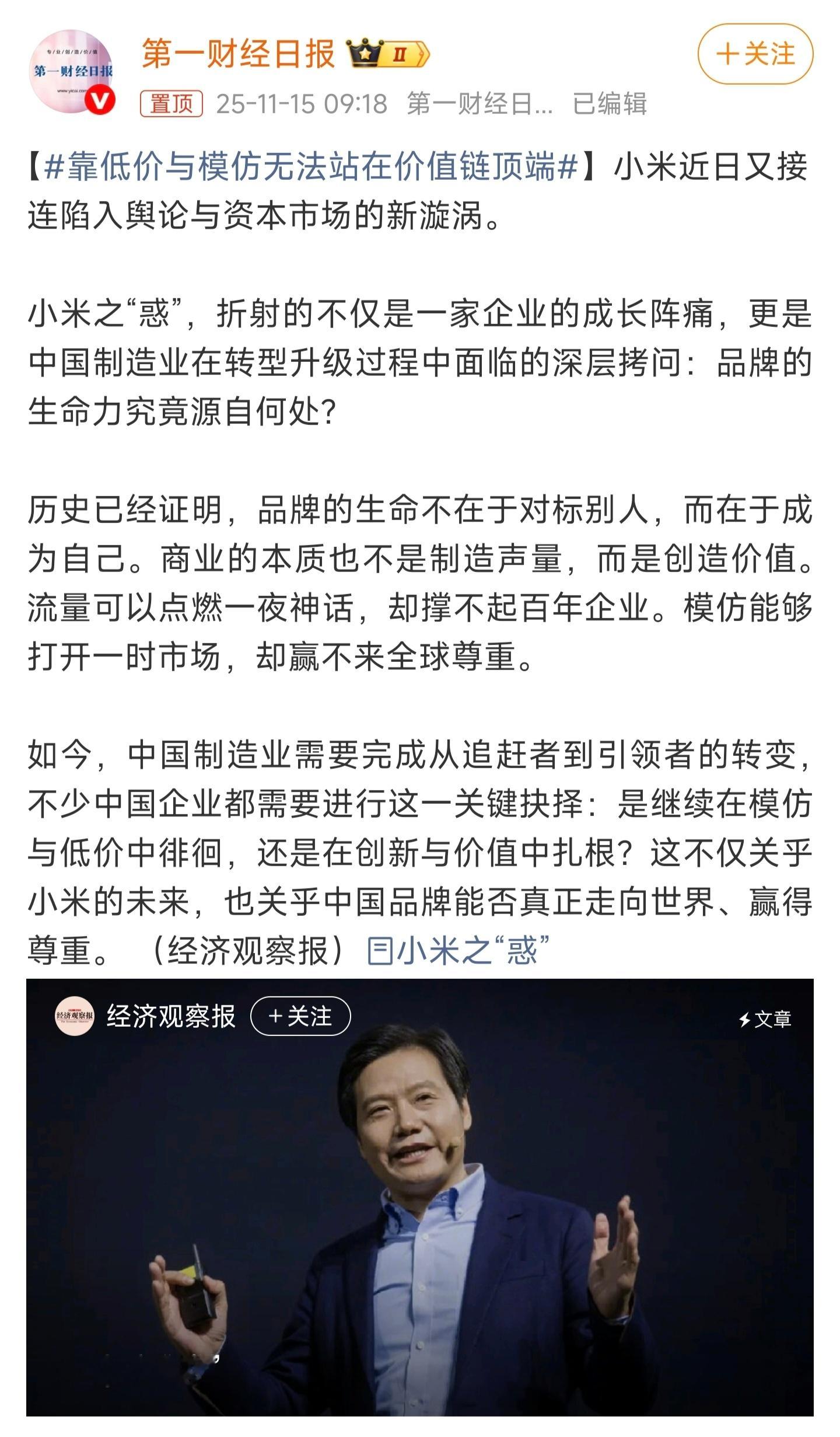 “品牌的生命不在于对标别人”“模仿能够打开一时市场,却赢不来全球尊重”