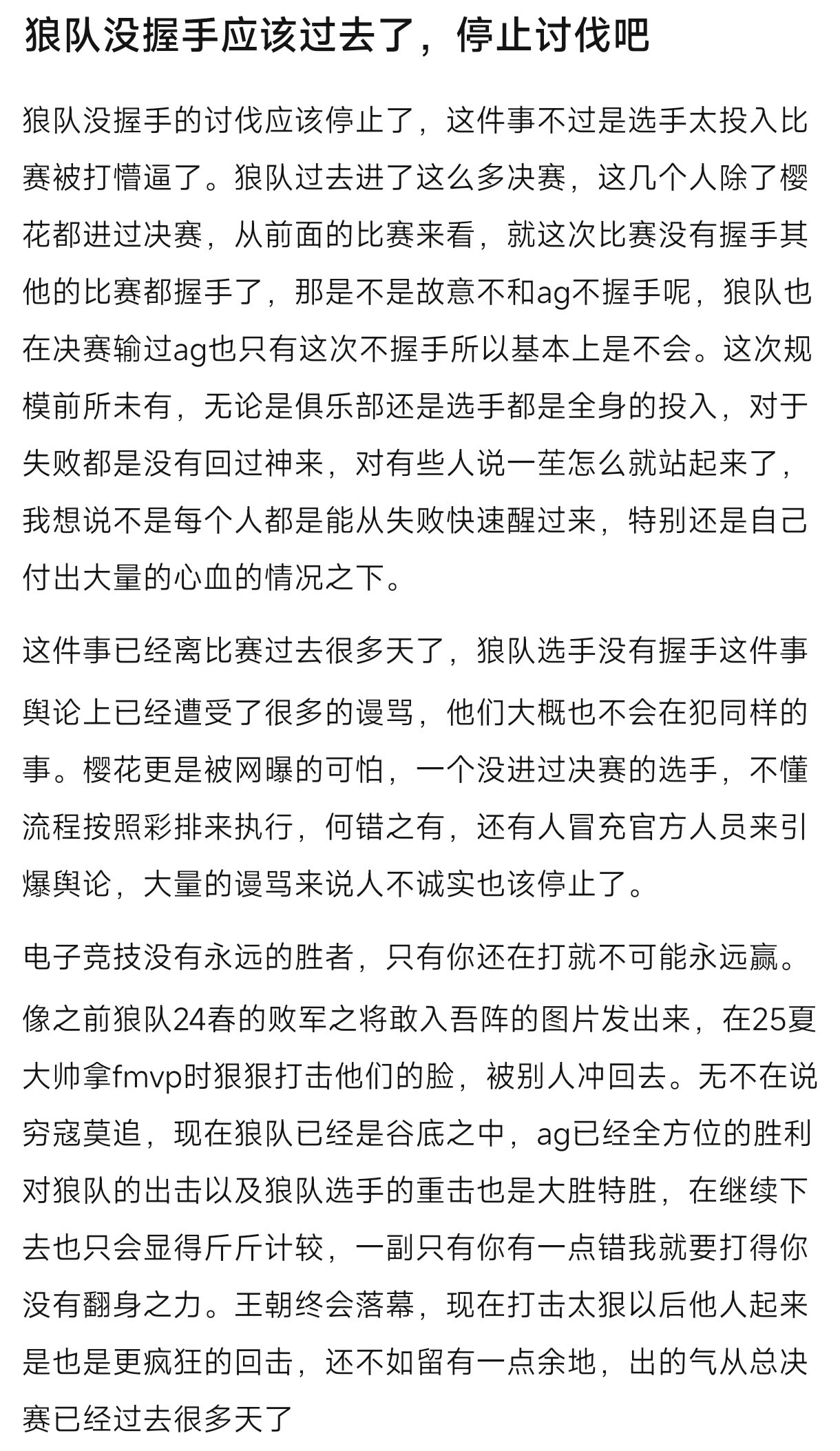 狼队没握手的讨伐应该停止了,这件事不过是选手太投入比赛被打懵逼了